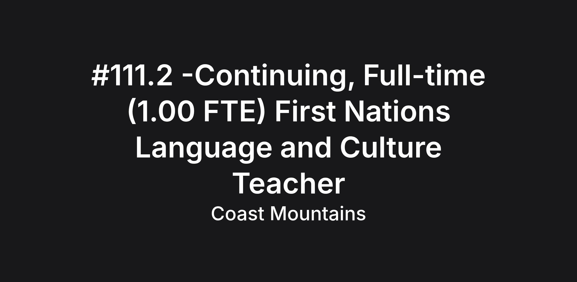 Position - Continuing, full-time (1.00 FTE) - First Nations Language and Culture Teacher