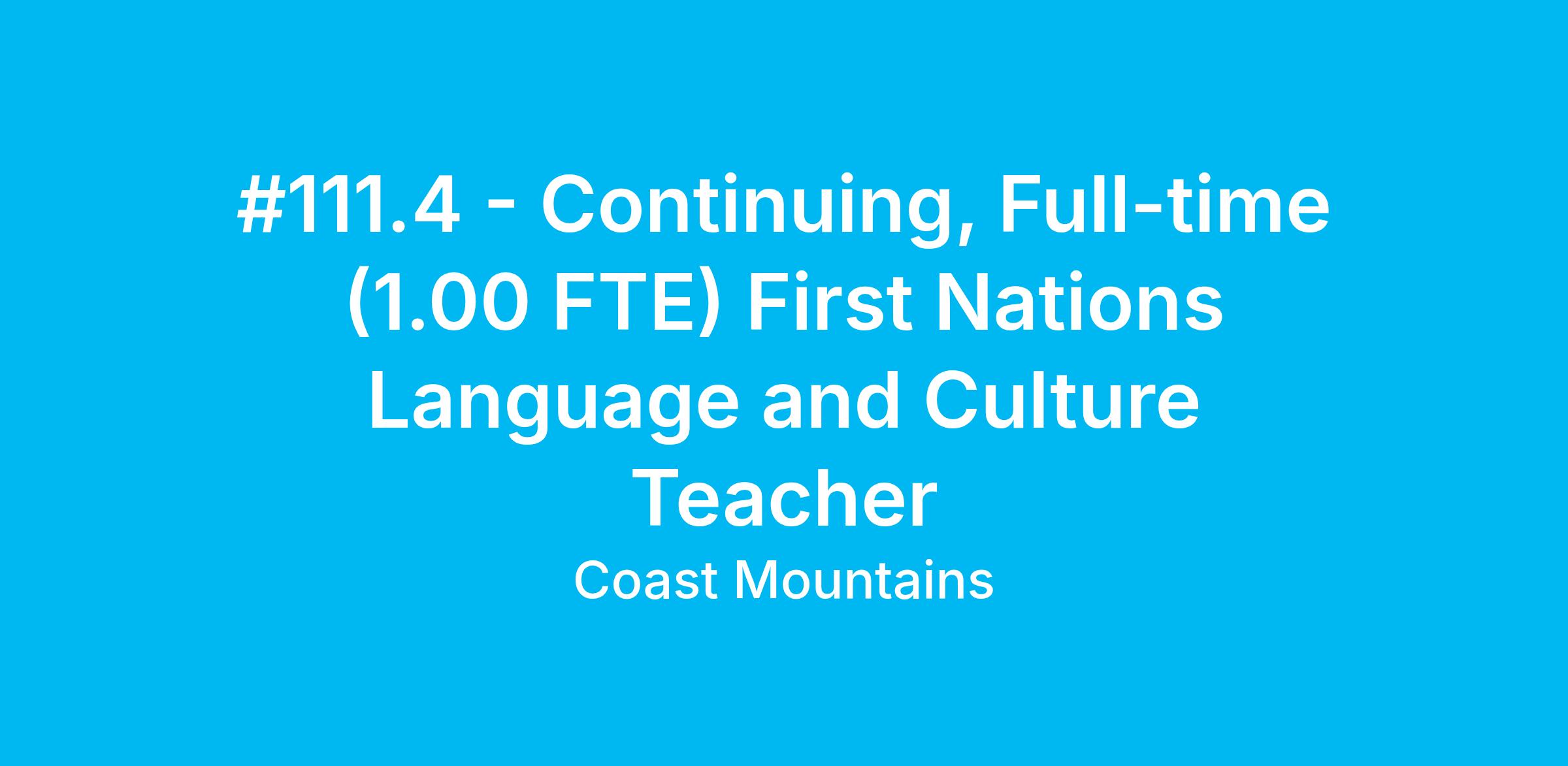 #111.4 - Continuing, Full-time (1.00 FTE) First Nations Language and Culture Teacher
