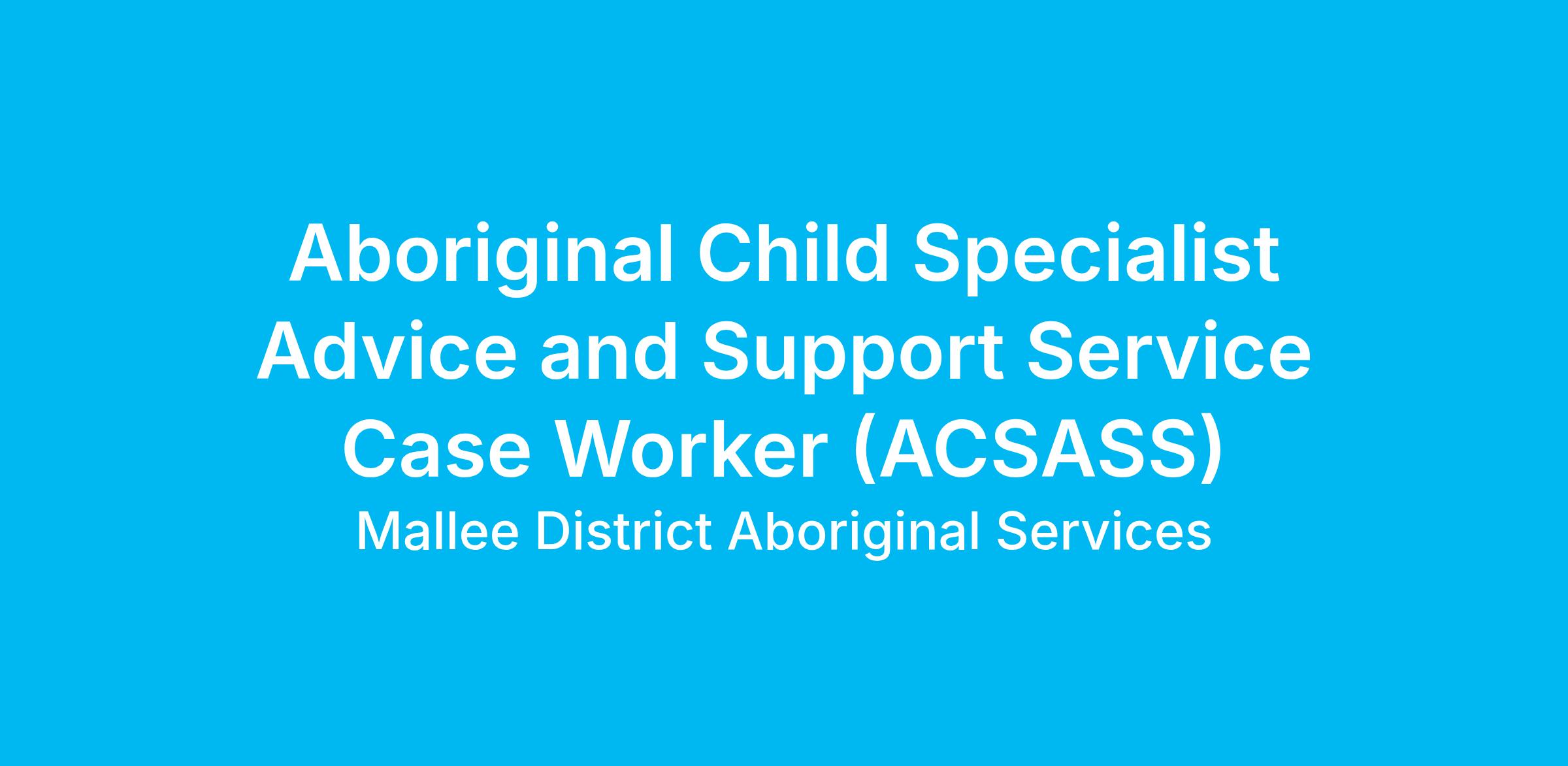 An opportunity for an Aboriginal Child Specialist Advice and Support Service Case Worker (ACSASS) is available and as a valued member in our team you will assist, support and strengthen Aboriginal families who are in contact with Child Protection.