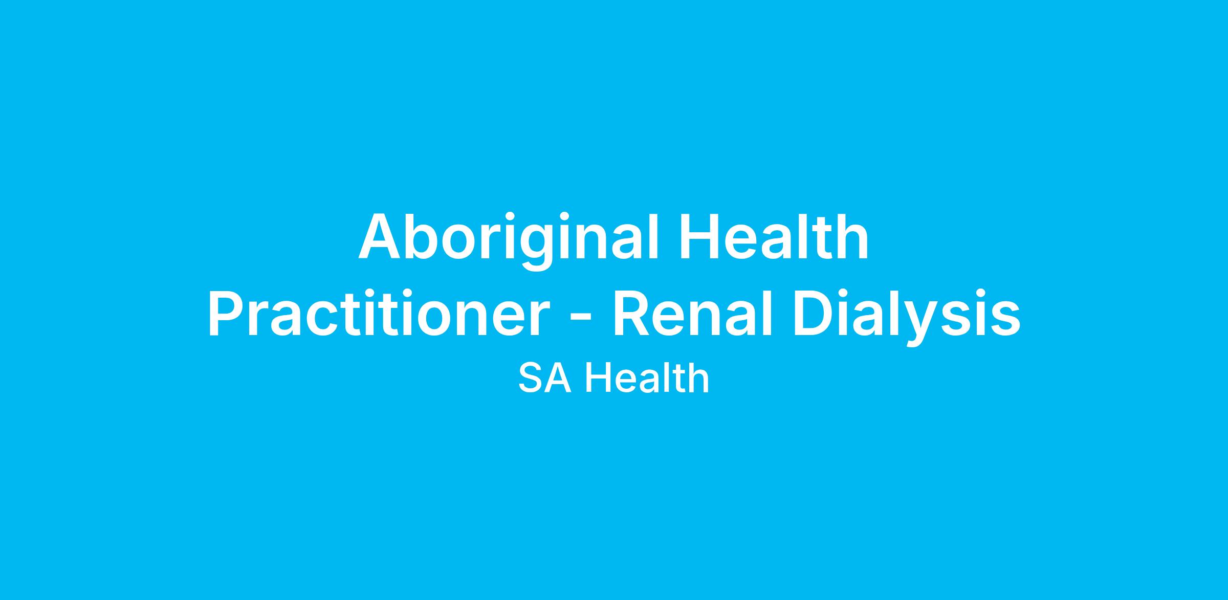 Unique Career Opportunity: Aboriginal and Torres Strait Islander Health Practitioner – Renal Unit (Dialysis)