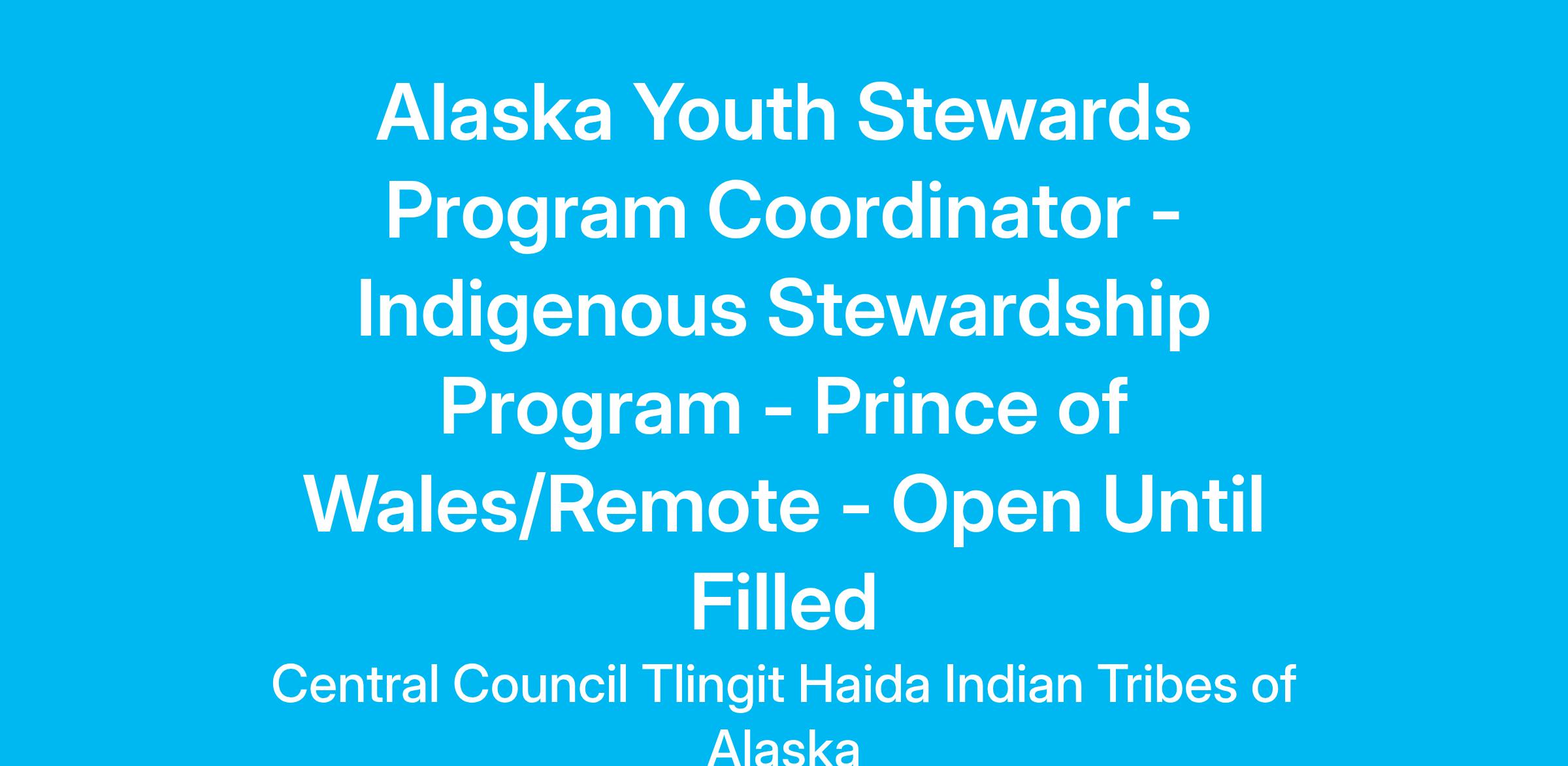 Purpose: The Alaska Youth Stewards Program Coordinator will support advancing the growth and development of youth stewardship throughout Southeast Alaska. This position will primarily oversee the Prince of Wales Island Youth Stewards but also help organize regional program efforts and work closely with other Indigenous Stewardship teams.