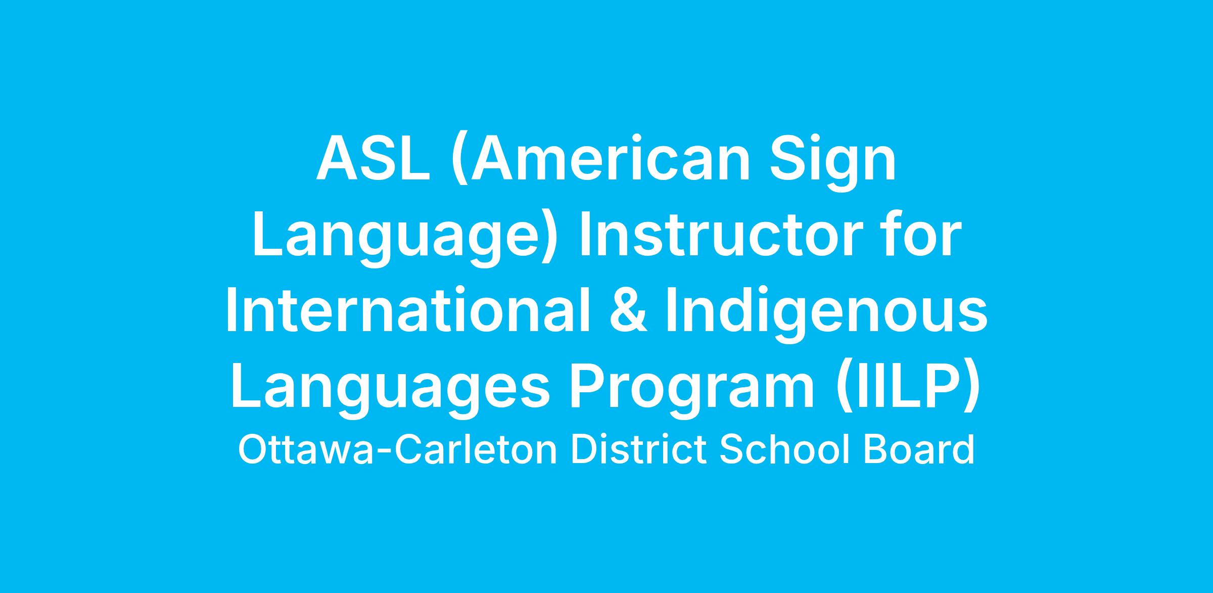 The Ottawa-Carleton District School Board is seeking qualified ASL (American Sign Language) instructors to fill Continuing Education International & Indigenous Languages teaching and/or supply teaching position. Classes take place on Saturdays (1:00-3:30 pm) and during the week for the After School Program (Mondays & Tuesdays 4:00-5:15 pm). Classes on Saturday afternoon and during the After School Program are offered virtually throughout the year.