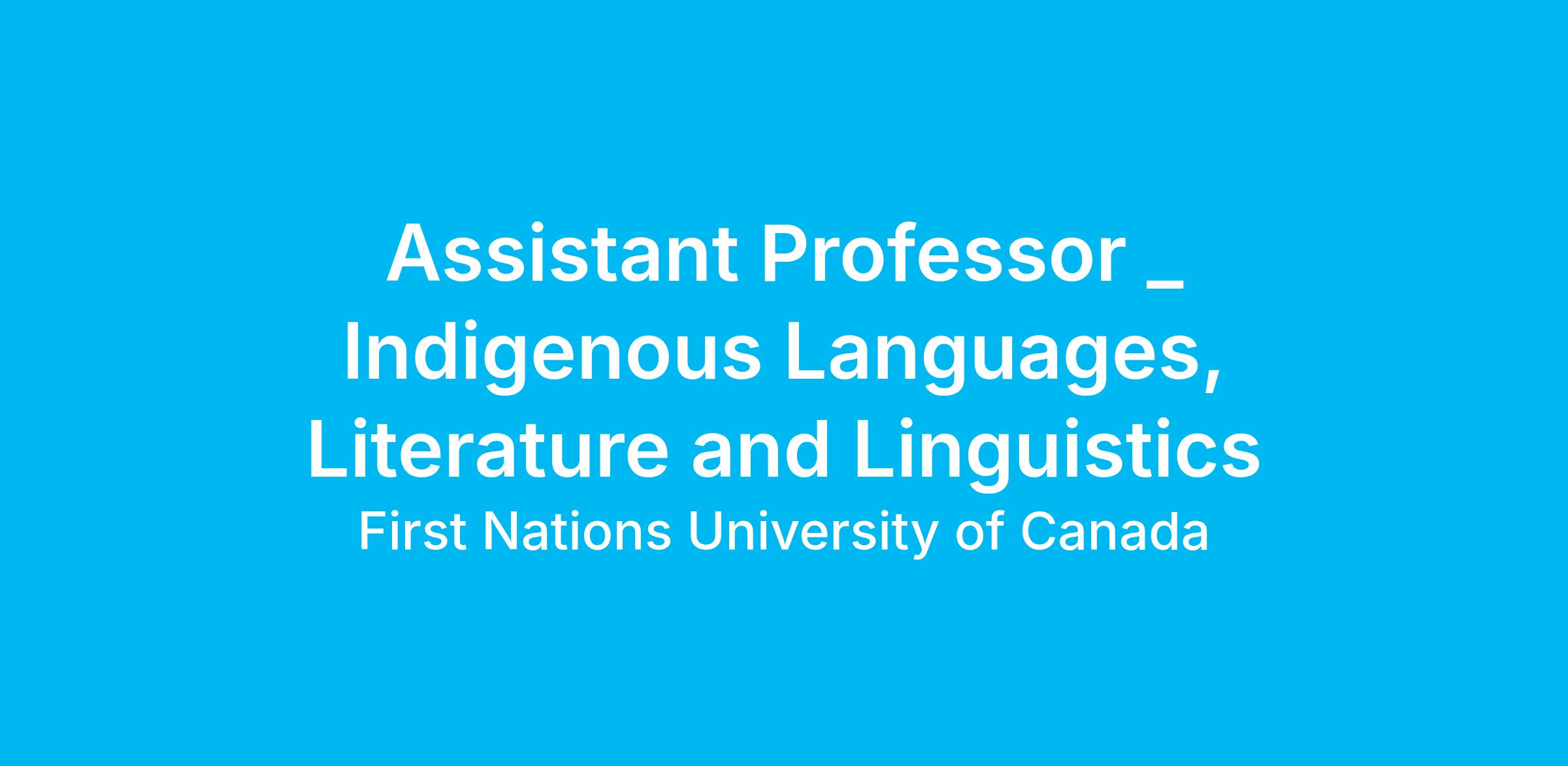 Assistant Professor _ Indigenous Languages, Literature and Linguistics
