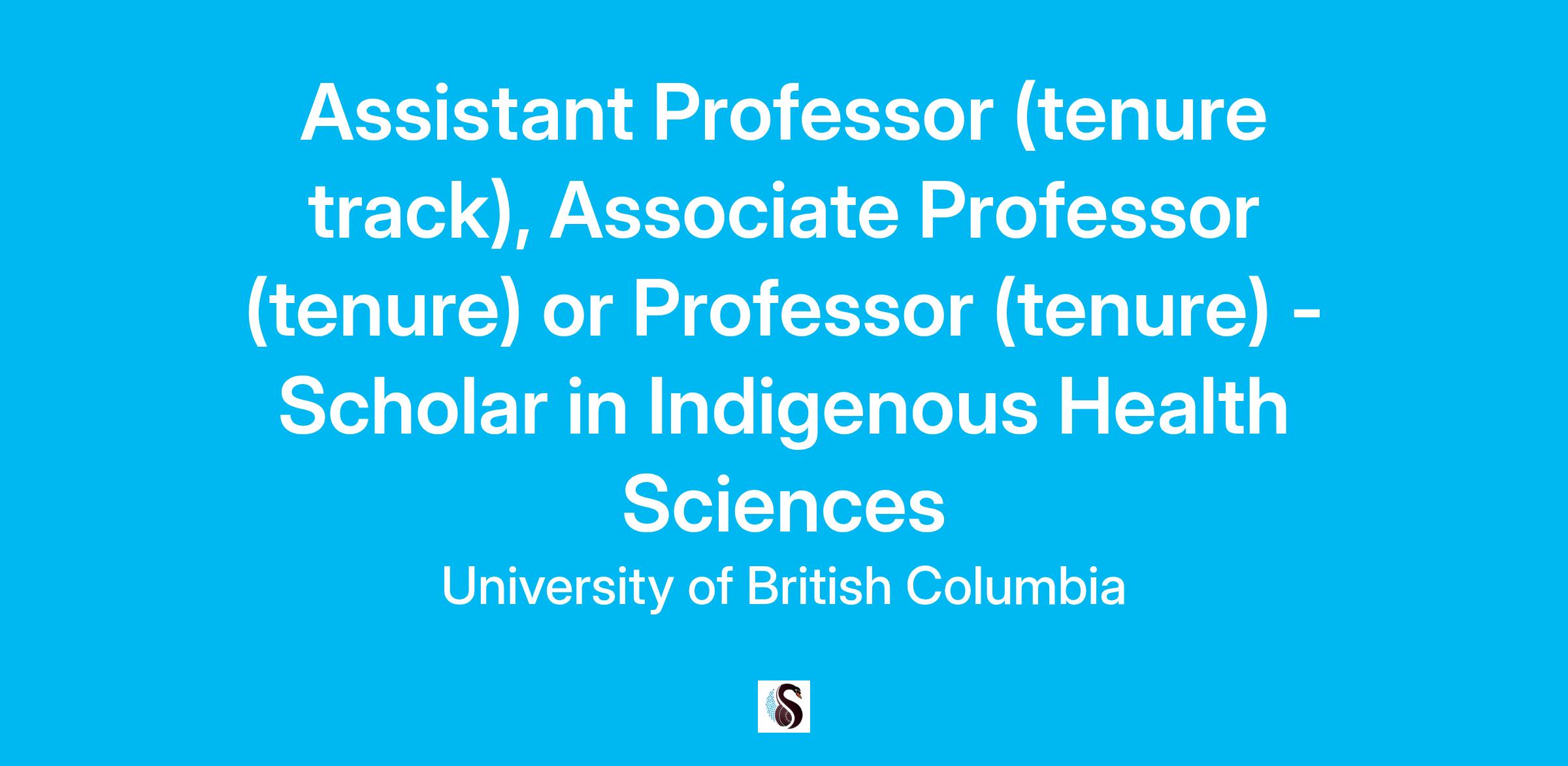Applications should be submitted online at https://ubc.wd10.myworkdayjobs.com/ubcfacultyjobs/job/UBC-Vancouver-Campus---Vancouver-BC-Canada/Assistant-Professor--tenure-track---Associate-Professor--tenure--or-Professor--tenure-_JR22992 . Queries about the posting may be sent to: Shermila Salgadoe, Director, Administration at shermila.salgadoe@ubc.ca with subject line: Scholar in Indigenous Health Sciences.