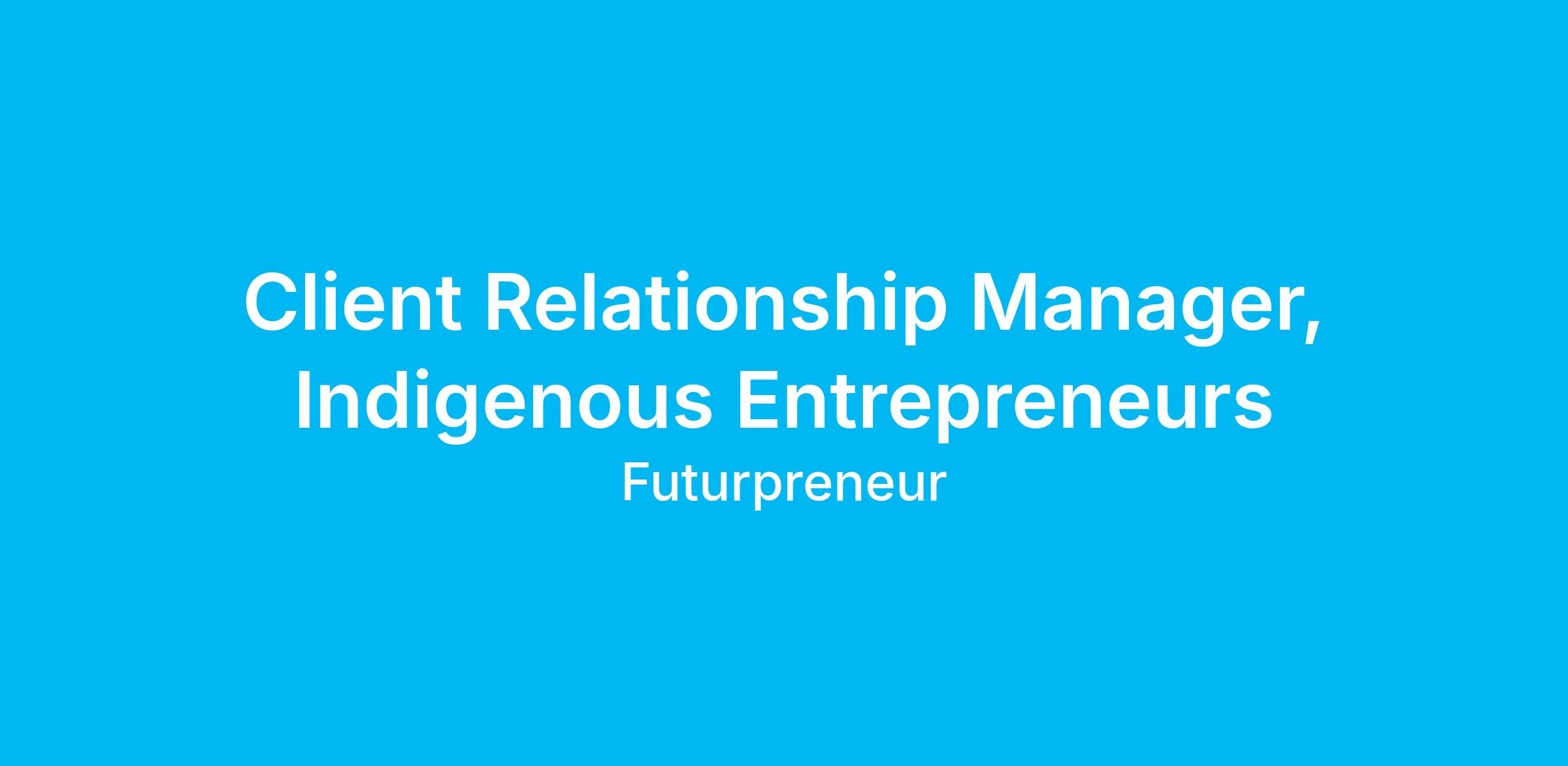 Here’s the opportunity: Client Relationship Manager, Indigenous Entrepreneurs