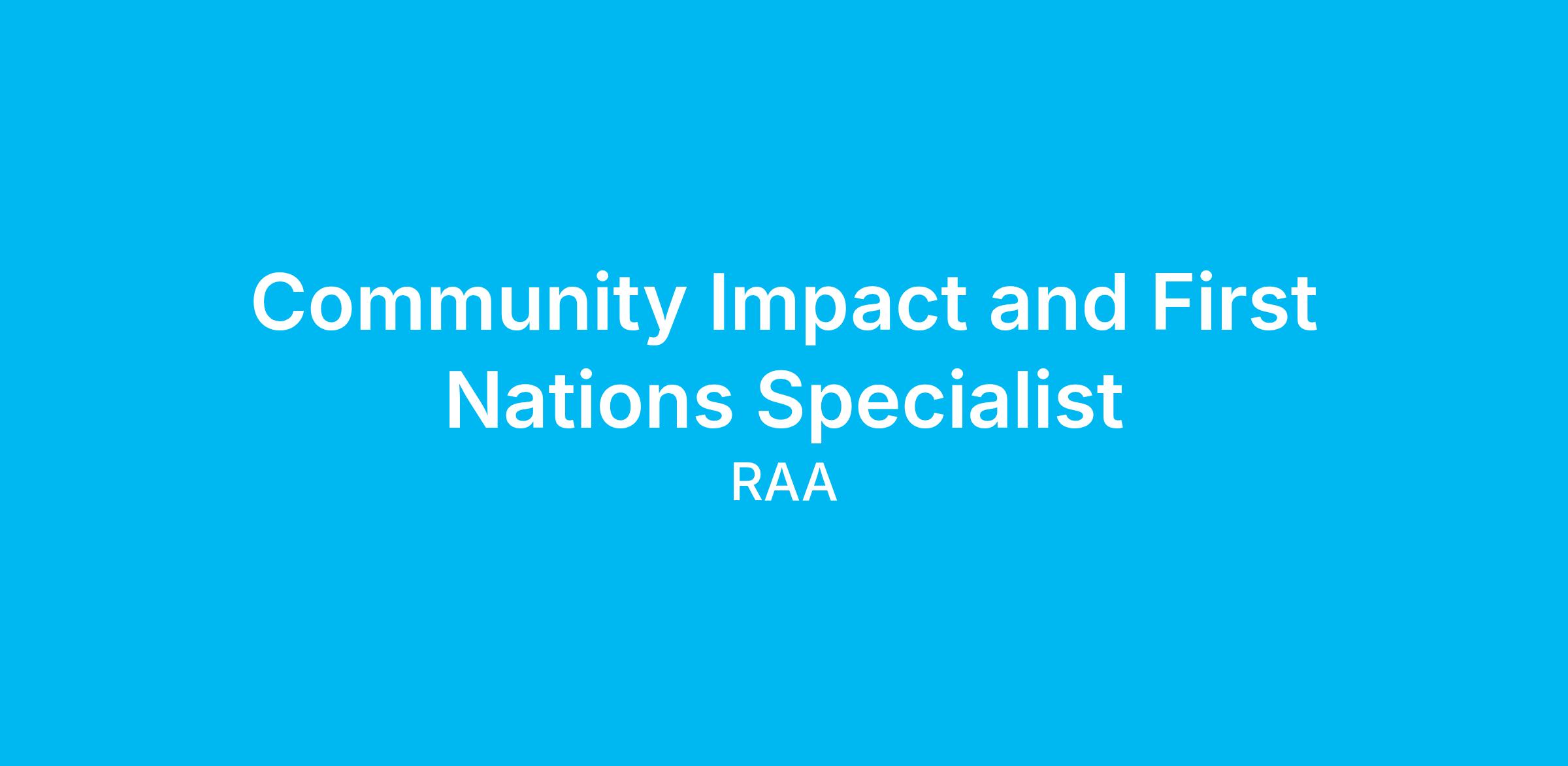 · Supporting integration of a First Nations voice into RAA’s Community Impact strategy and broader initiatives
