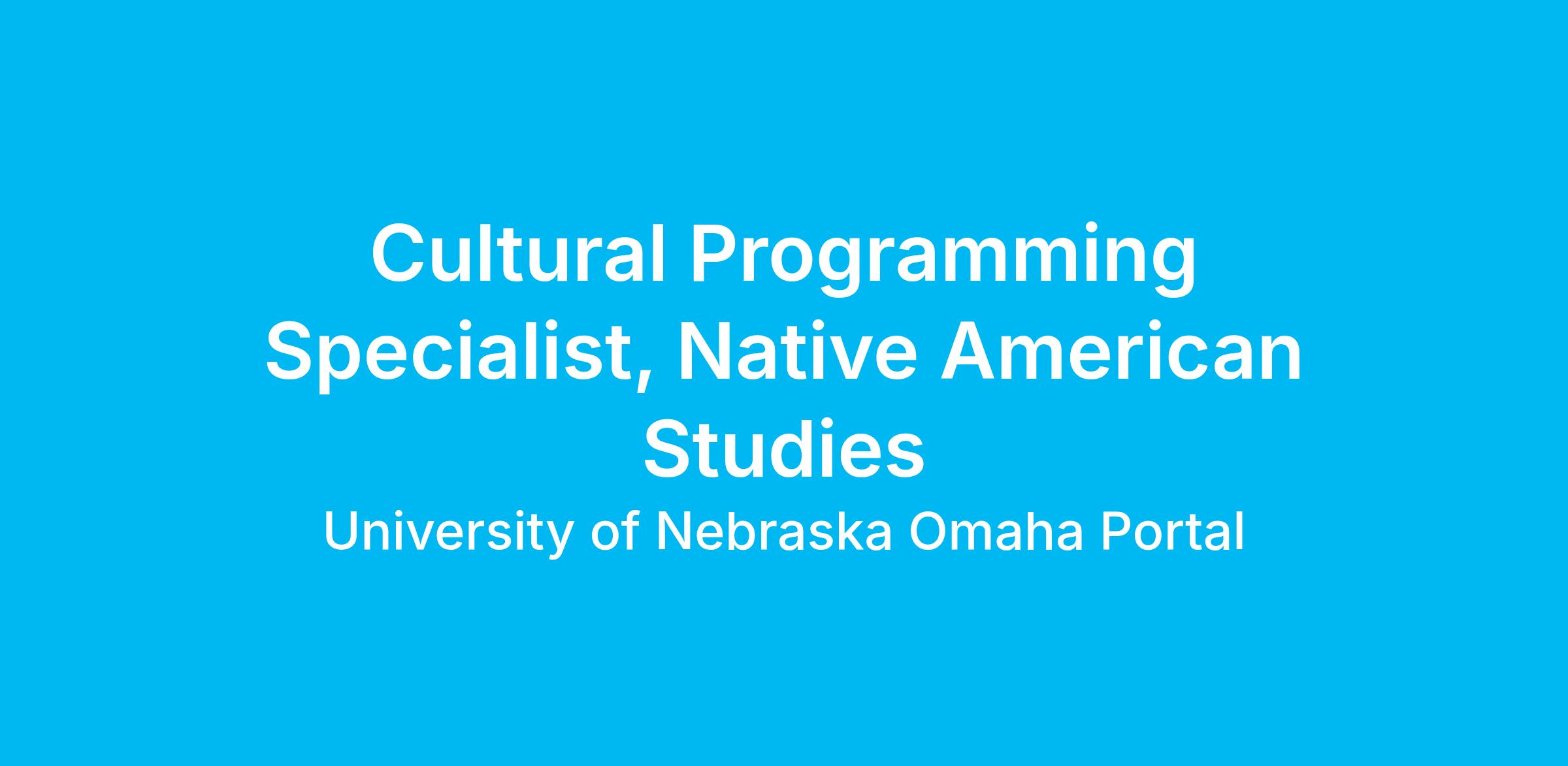 This .25 FTE position focuses on Native American cultural programming and student advocacy at UNO Native American Studies ( NAS ) through community and campus engagement. Responsibilities include planning Native American cultural programming (both on the UNO campus and in the community), building and strengthening relationships by representing UNO NAS in the urban Native community, establishing and maintaining a social media presence for the Native Lifeways Project to publicize activities and goals of the project, working directly with students at UNO to provide cultural programming for retention, collaborating with the Cultural Outreach Specialist on recruiting students to UNO .