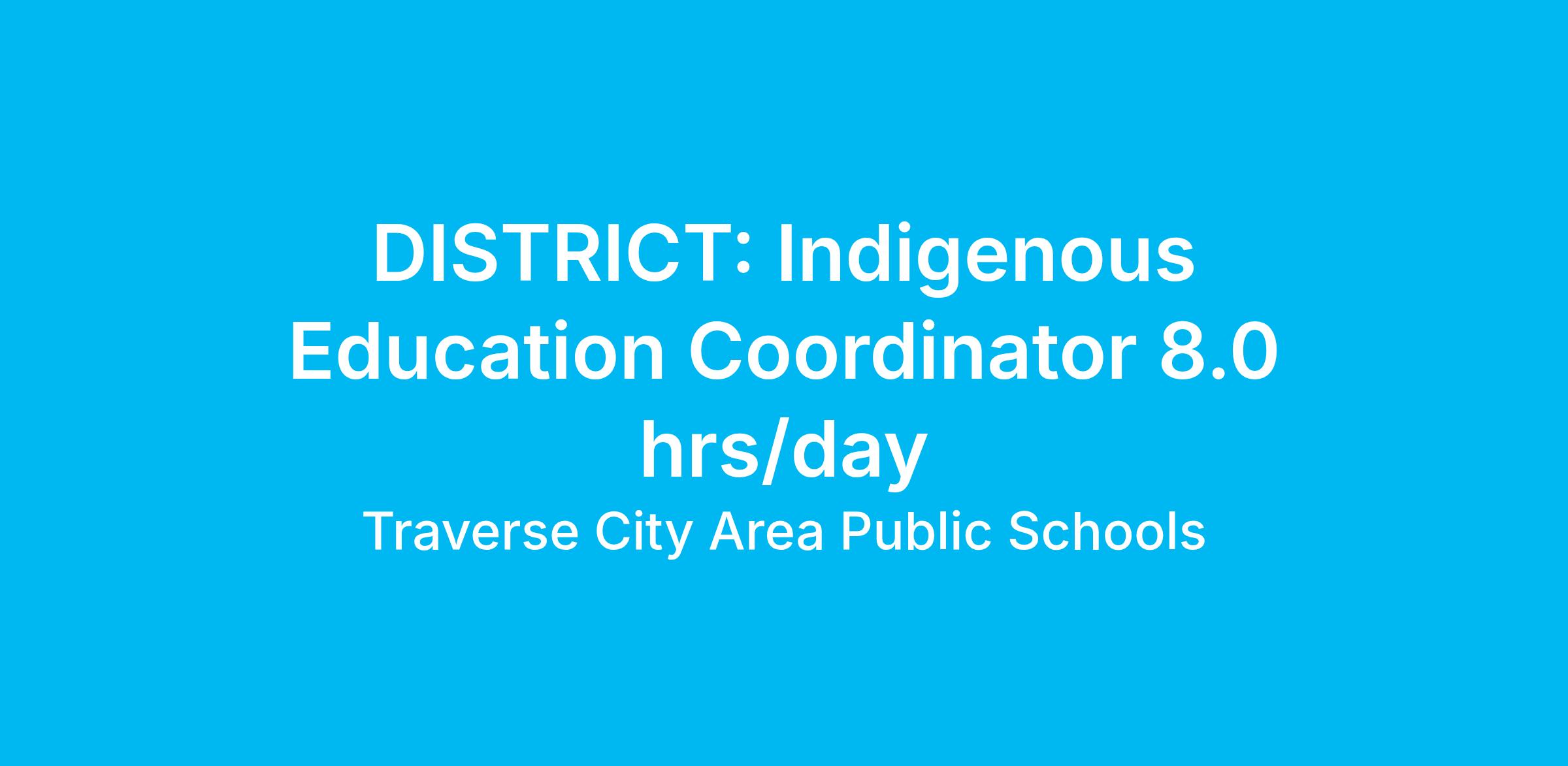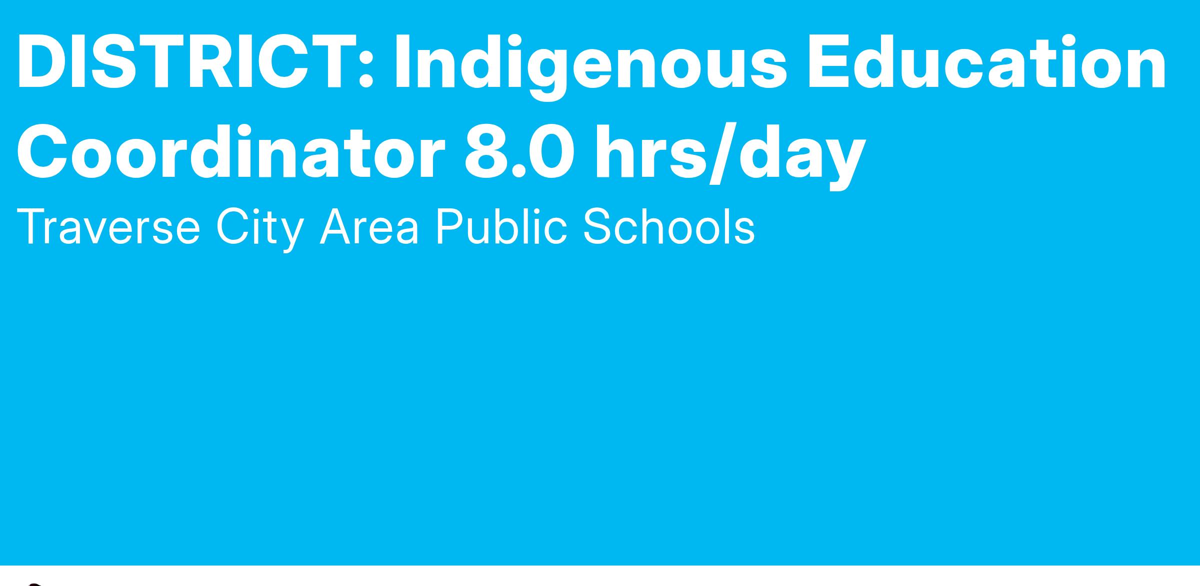 The Title VI/Indigenous Education Coordinator is responsible for providing Native American cultural support and education for Traverse City Public Schools. This position also works with Native American and Alaskan Native students throughout the district on cultural and academic needs.