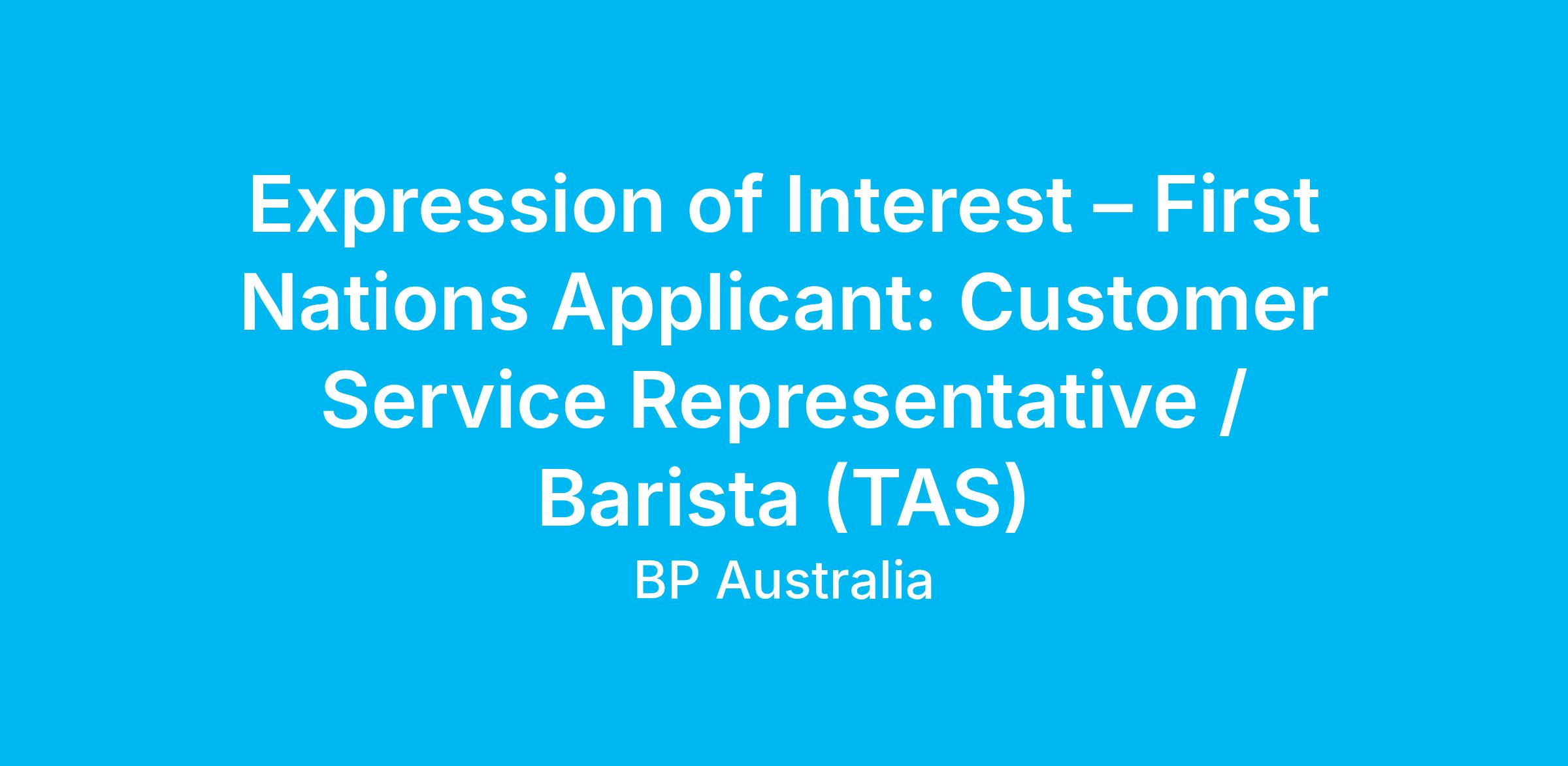 Expression of Interest – First Nations Applicant: Customer Service Representative / Barista (TAS)