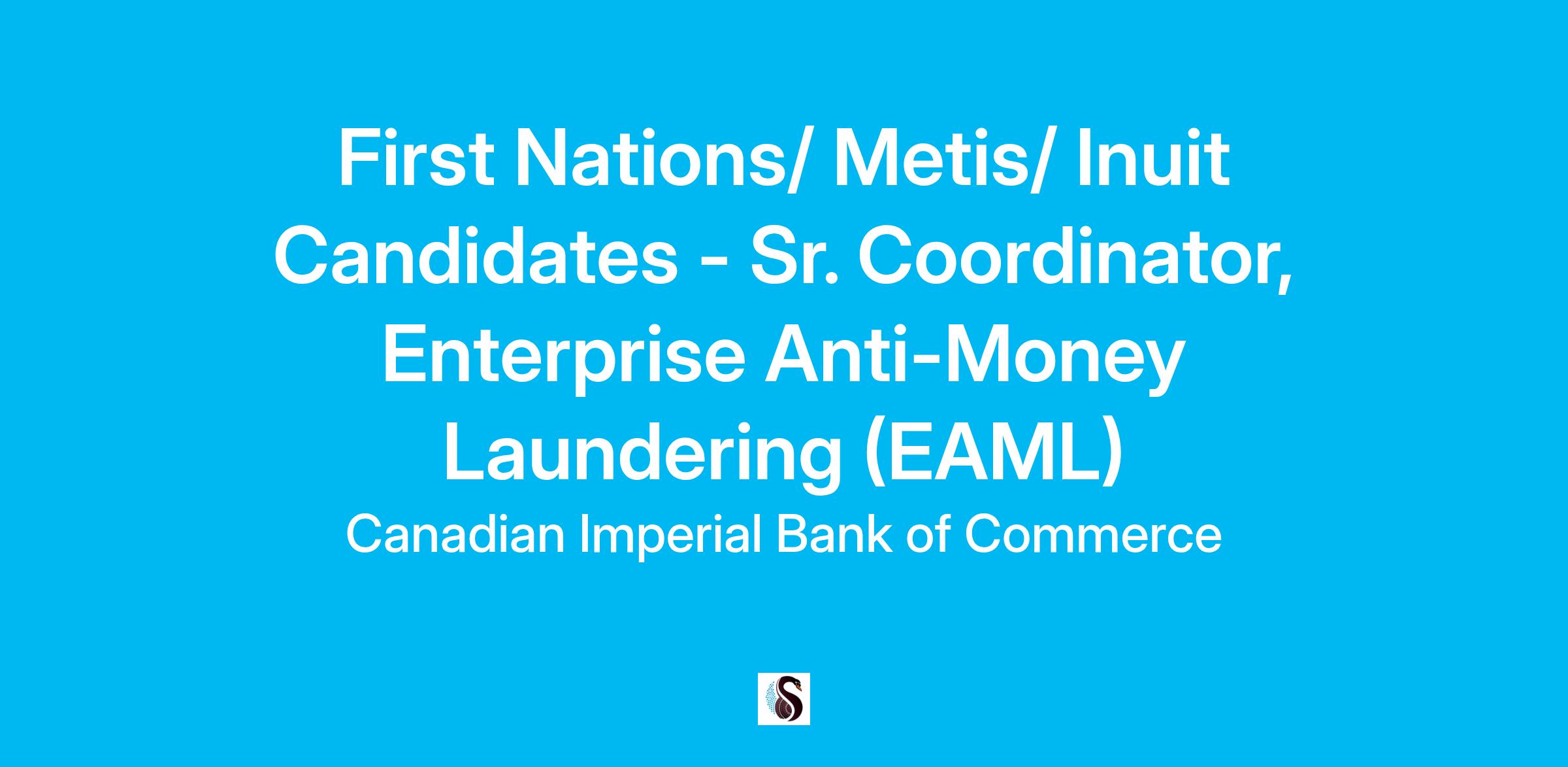 First Nations/ Metis/ Inuit Candidates - Sr. Coordinator, Enterprise Anti-Money Laundering (EAML)