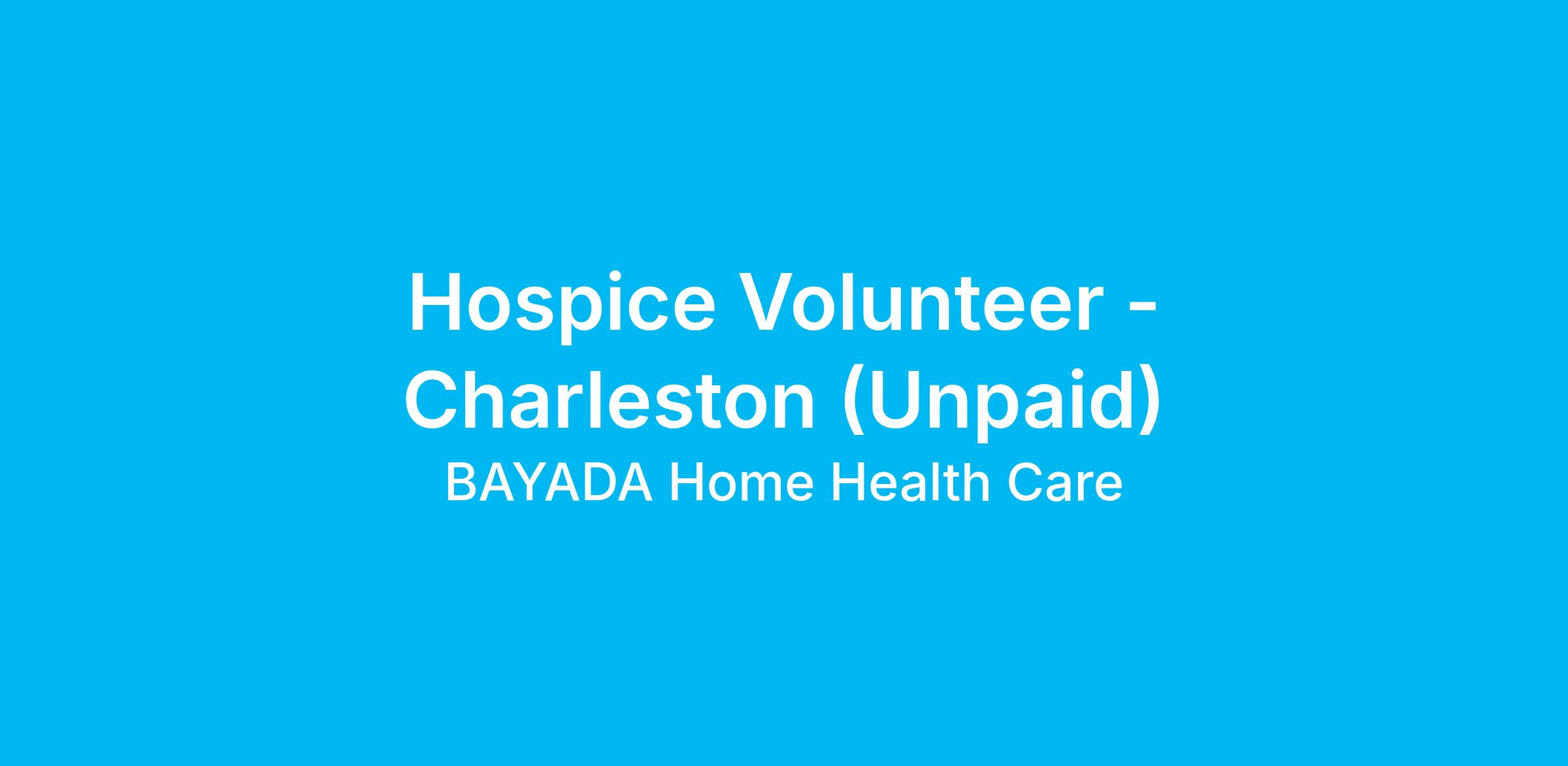 MUSC Health Hospice at Home by BAYADA is currently seeking candidates for our Volunteer, Hospice position to be a part of our team in our Charleston, SC office. This office services clients in territories throughout Berkeley, Charleston, & Dorchester Counties.