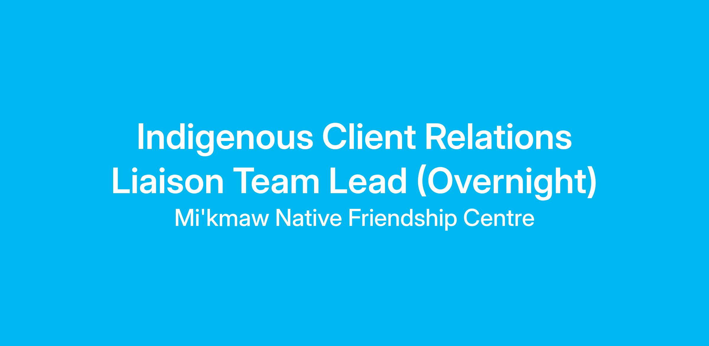 Employment Opportunity: Indigenous Client Relations Liaison Team Lead (overnights)