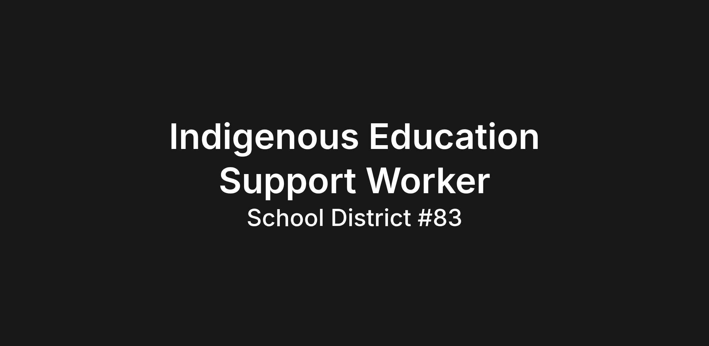 The Board of Education of School District No. 83 (North Okanagan-Shuswap) is inviting applications for Indigenous Education Support Workers’. This is a Union position; rate of pay is $29.54 per hour.