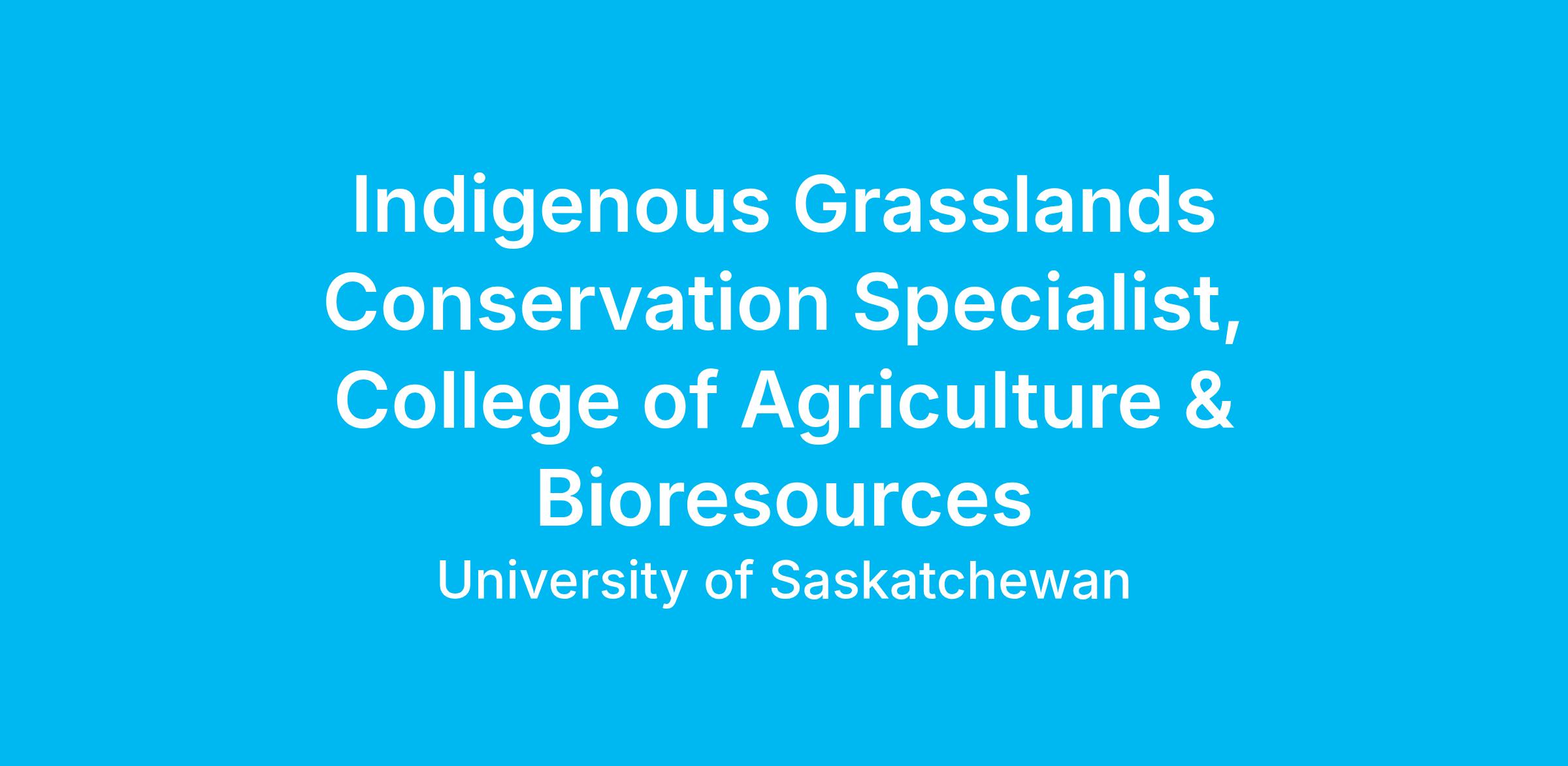 Indigenous Grasslands Conservation Specialist, College of Agriculture & Bioresources