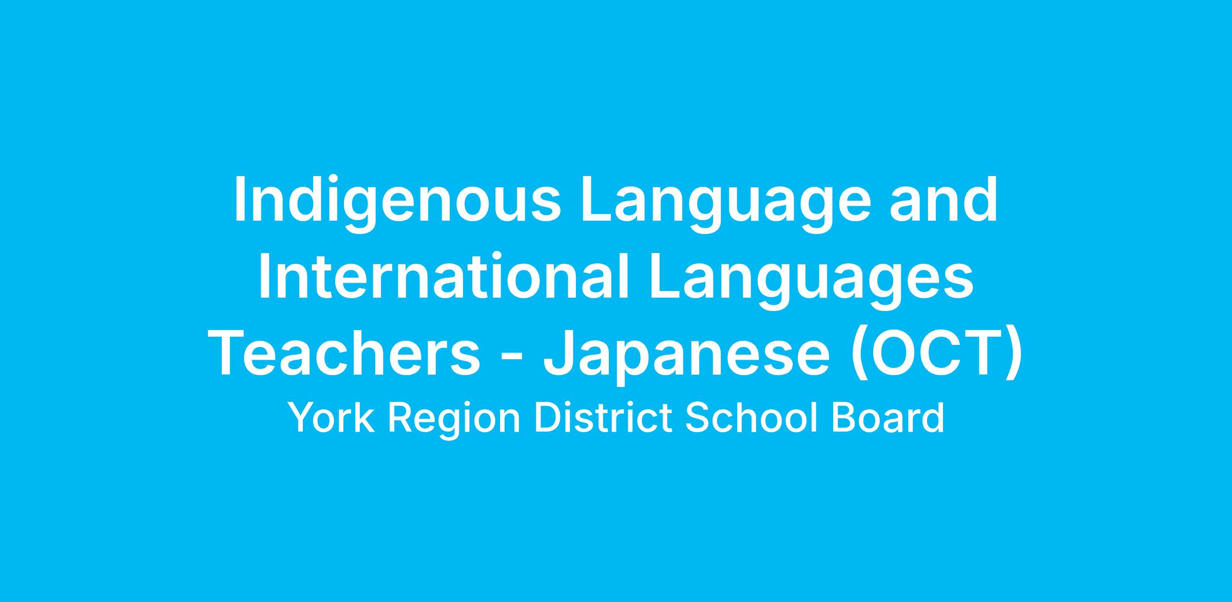 Thank you for your interest in a career as an Indigenous Language and International Languages Teachers with the York Region District School Board. This application is for consideration for positions throughout the 2024/2025 school year, effective September 2024 and ending on or about June 2025, with a possibility of renewal. Candidates will be contacted as vacancies arise. The work schedule and salary depend on the type of program being taught and the OCT status of the applicant.