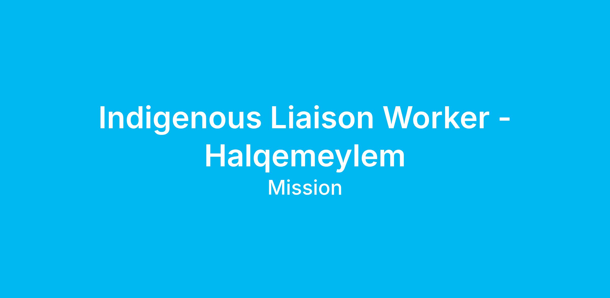 Indigenous Liaison Worker - Halqemeylem