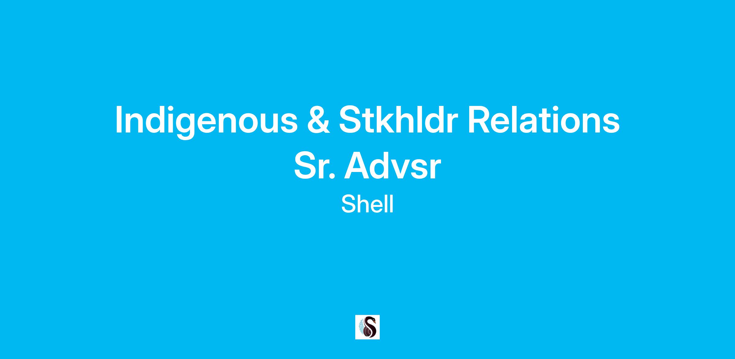 Shell is seeking an Indigenous & Stkhldr Relations Sr. Advsr (internally known as Senior Advisor, National Indigenous and Stakeholder Relations) to join its team in Calgary.