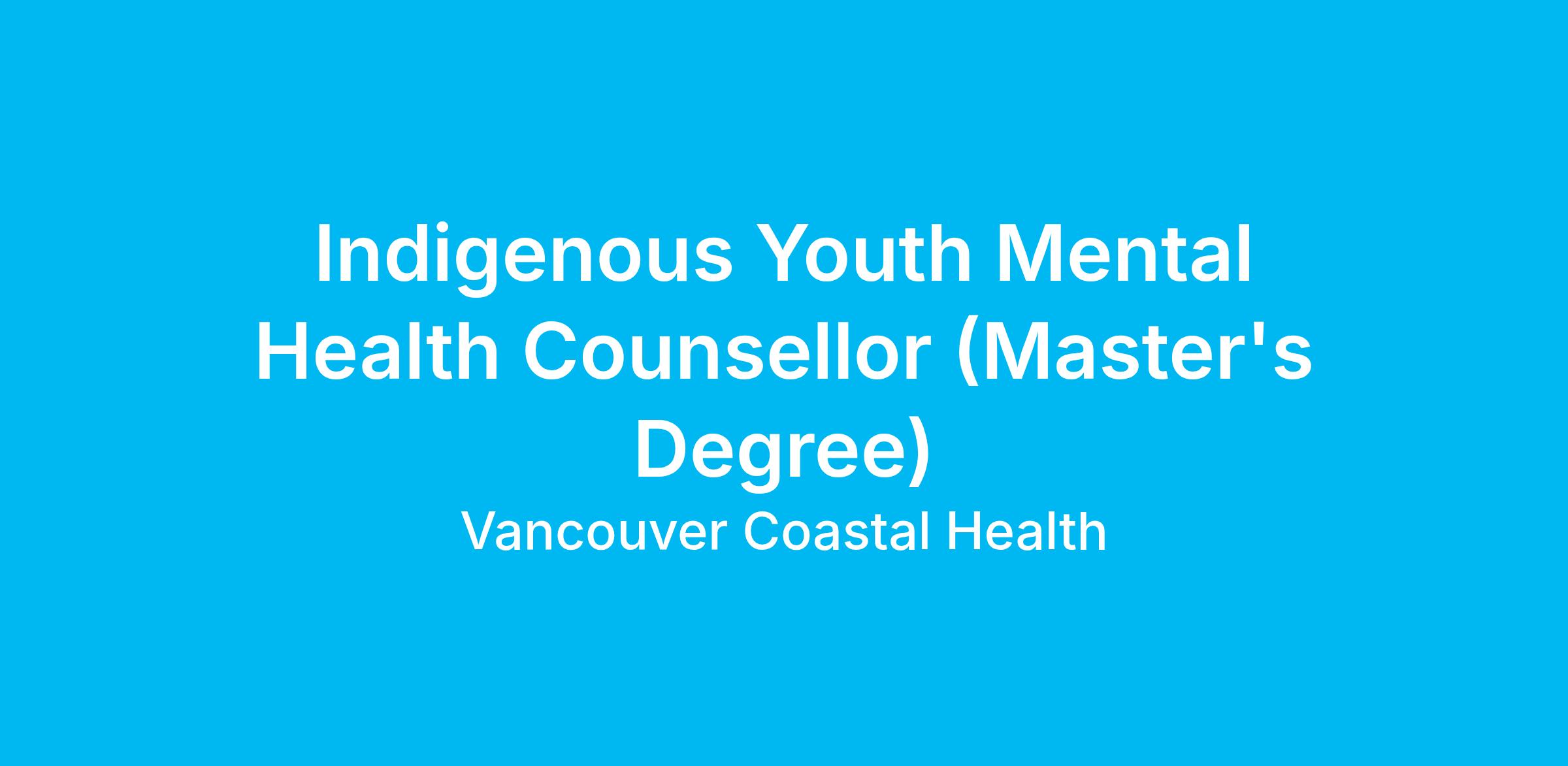 Come work as an Indigenous Mental Health Counsellor, Youth Development, with Vancouver Coastal Health (VCH)!