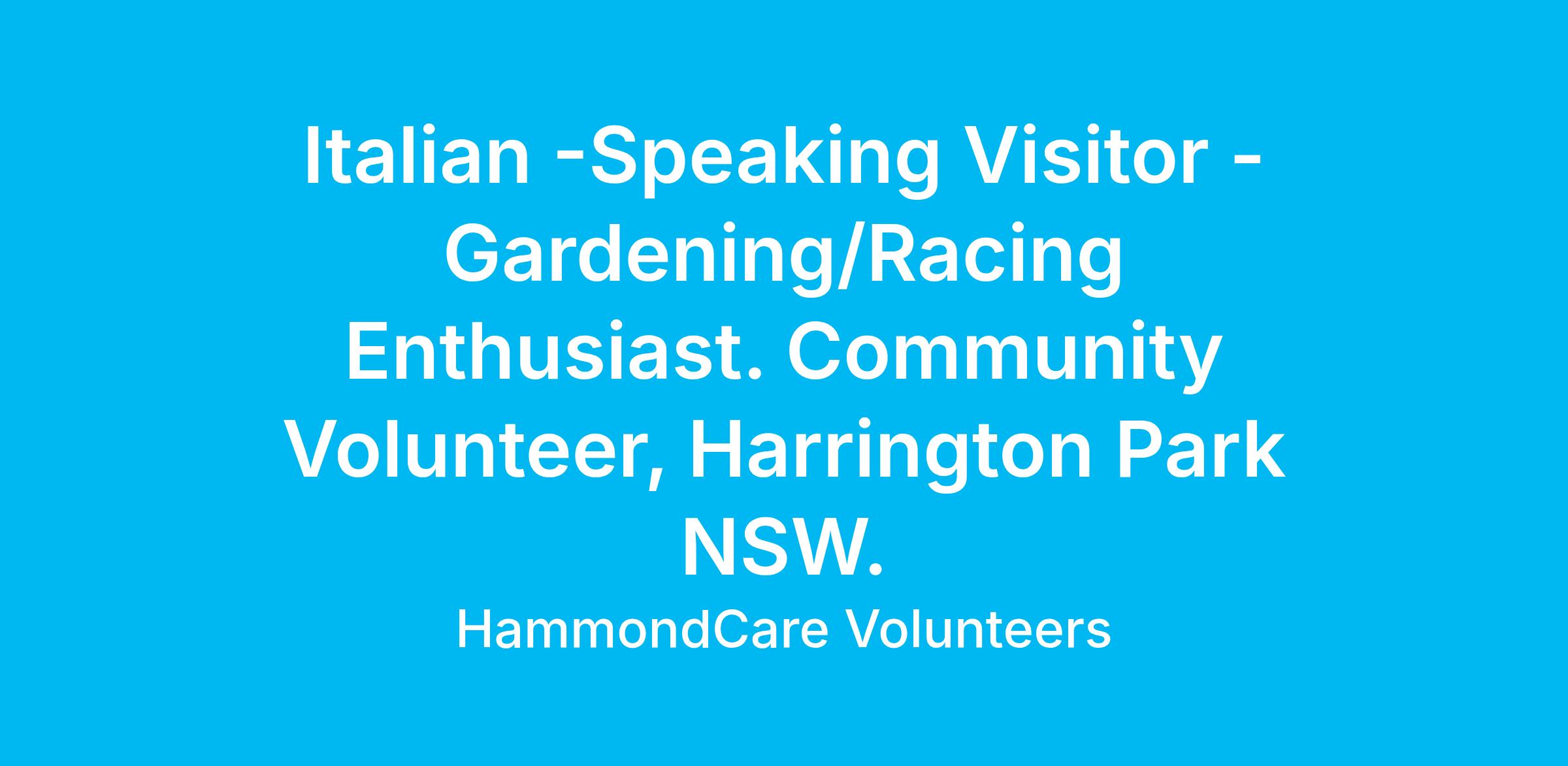 Weâre looking for a friendly Italian\-speaking volunteer to spend some time with a gentleman who enjoys gardening and watching the horse races.<\/b> <\/b>