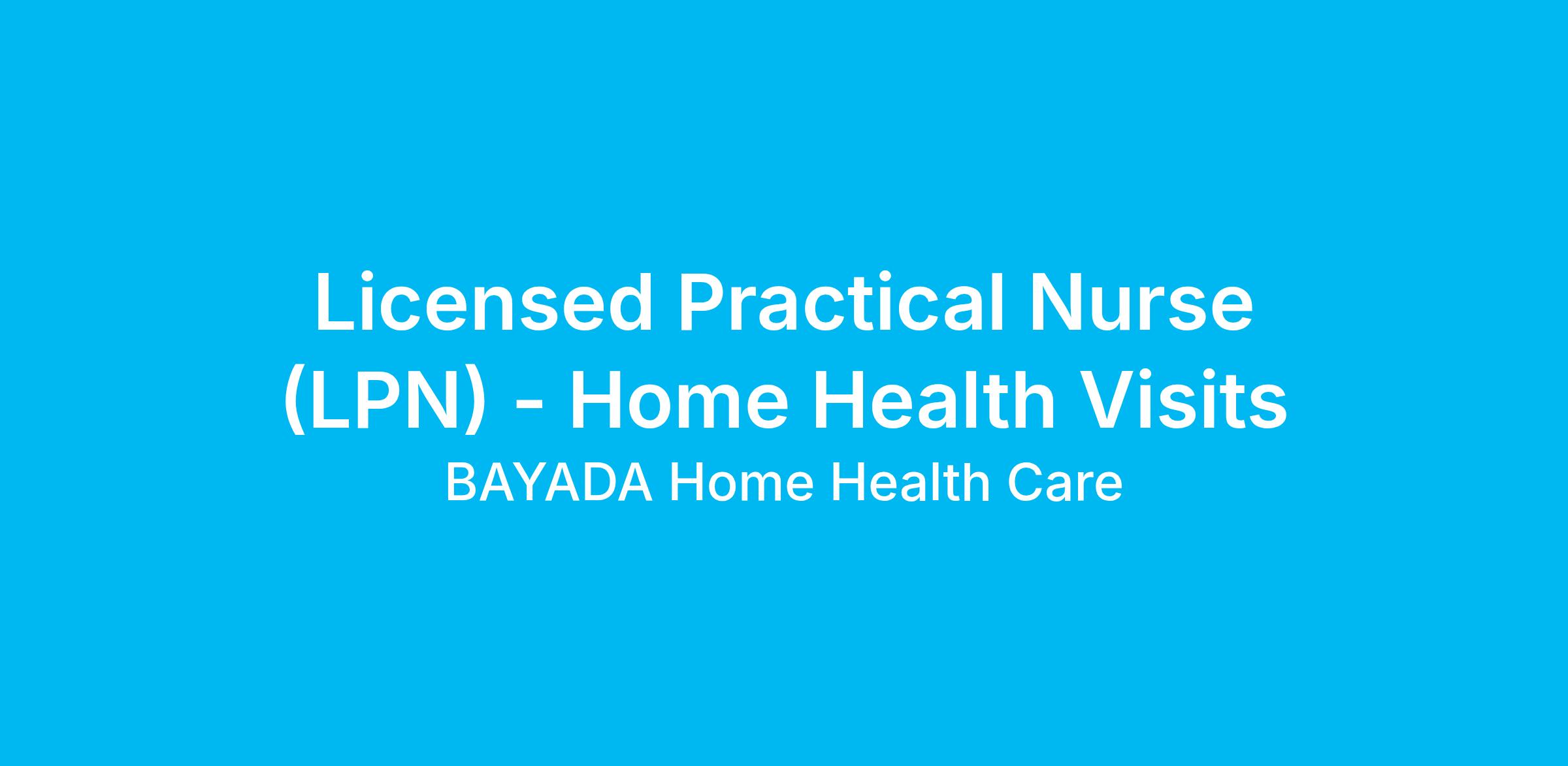 BAYADA Home Health Care is looking for a compassionate and dedicated Licensed Practical Nurse (LPN) to join our team on a full time basis. This office services our adult clients on a per visit basis in homes throughout Hudson County, NJ.