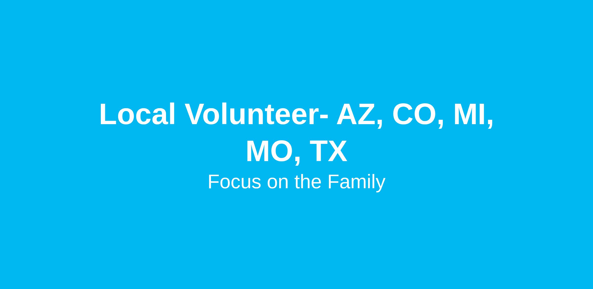 Personal Characteristics:Demonstrates a personal relationship with Jesus Christ Represents Focus on the Family in a professional manner Willingness to serve people and show kindness Knowledge/Experience:Must enjoy working in a variety of different departments Skills, Abilities, and Special Talents/Gifts:Computer experience a plus but not required
