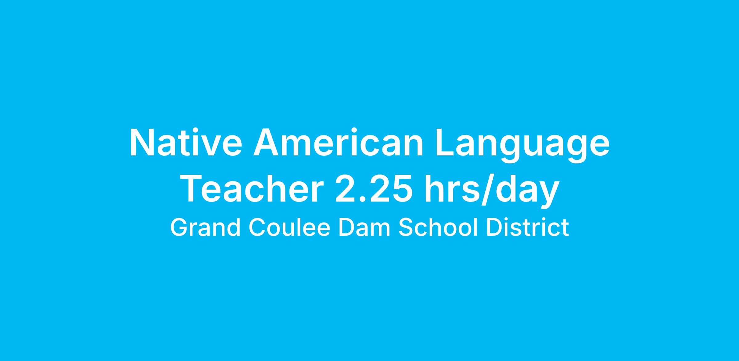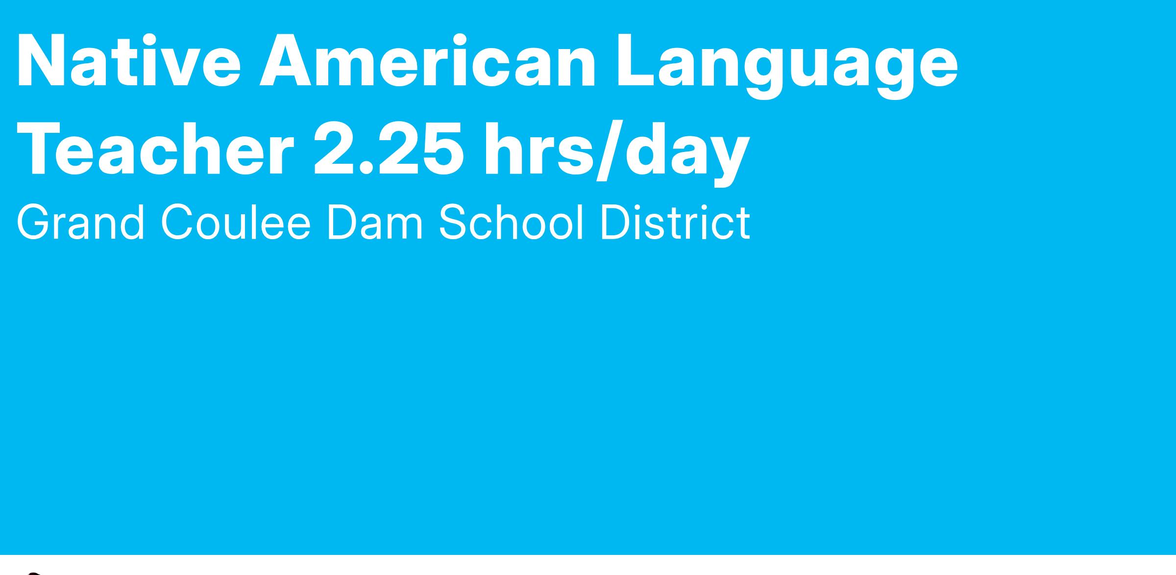 Grand Coulee Dam School District has an opening for a 2.25 hours Secondary Native American Language Teacher.