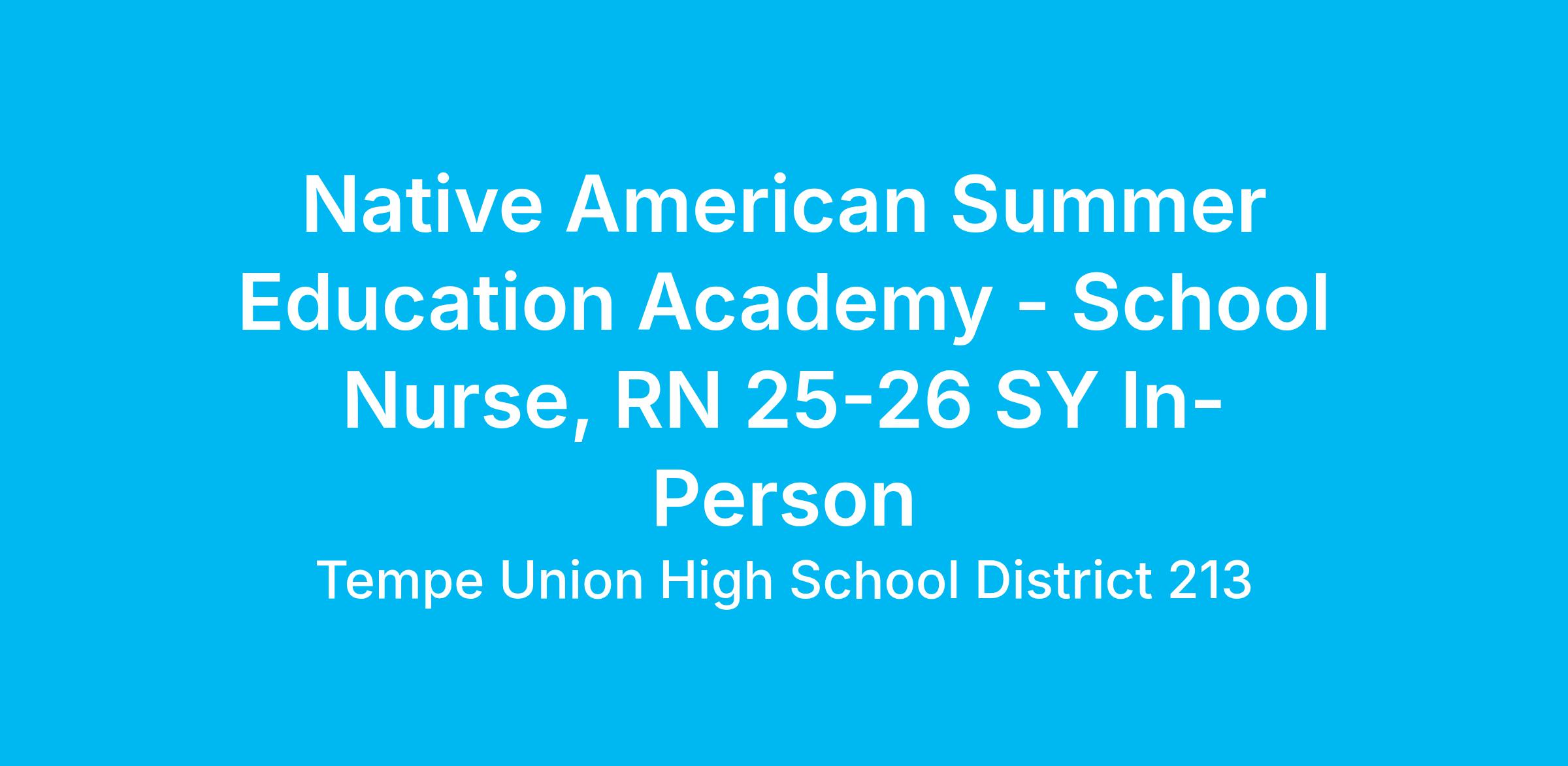 Description: Native American Summer Education Academy - School Nurse, RN 25-26 SY In-Person