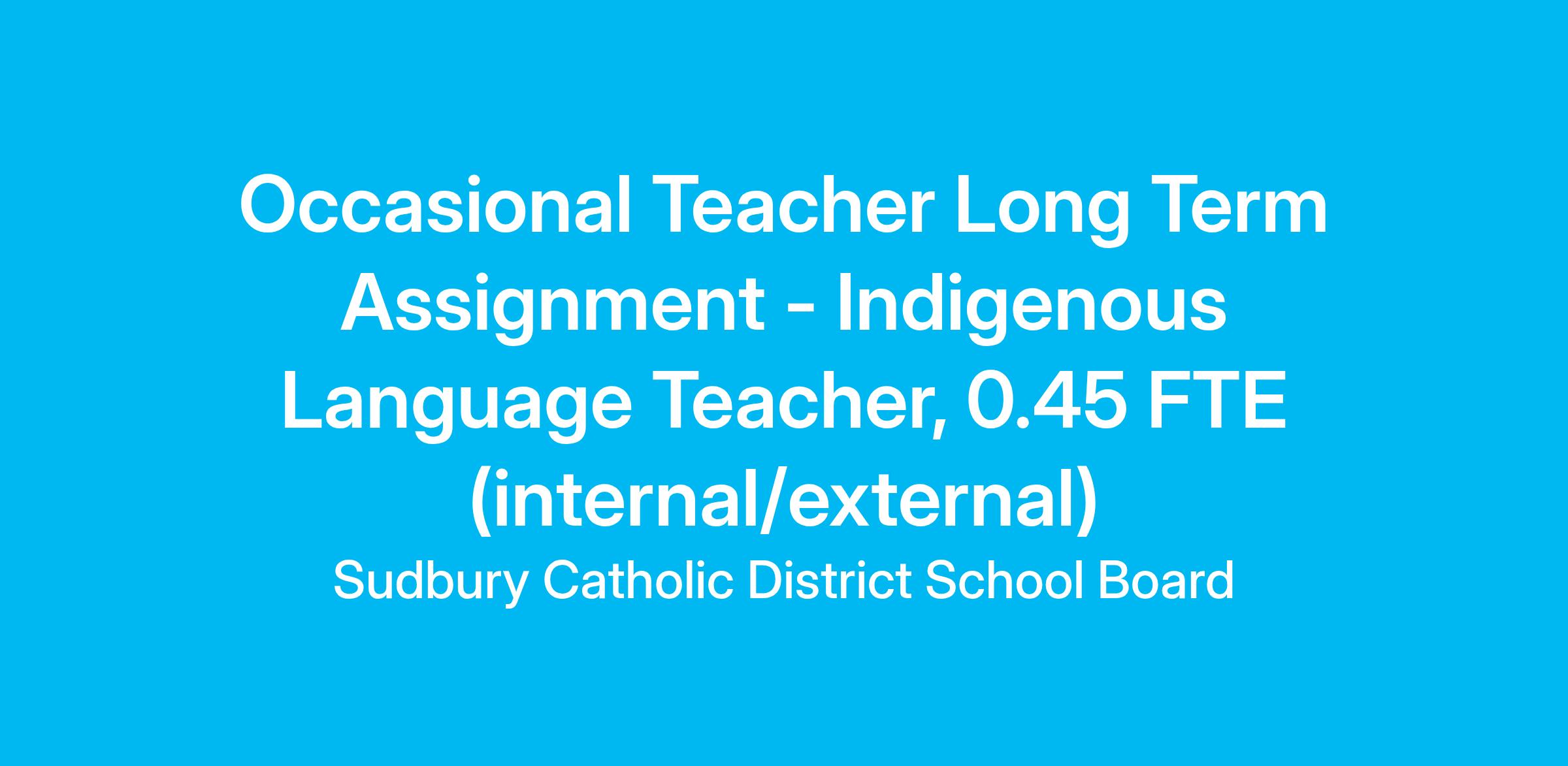 This assignment is being posted subsequent to Article 17.1.3 The Hiring of Occasional Teachers to Long Term Assignments found in the Central Terms of the Board’s collective agreements with OECTA. The end date is subject to change, however, this assignment will not extend beyond the end of the current school year.