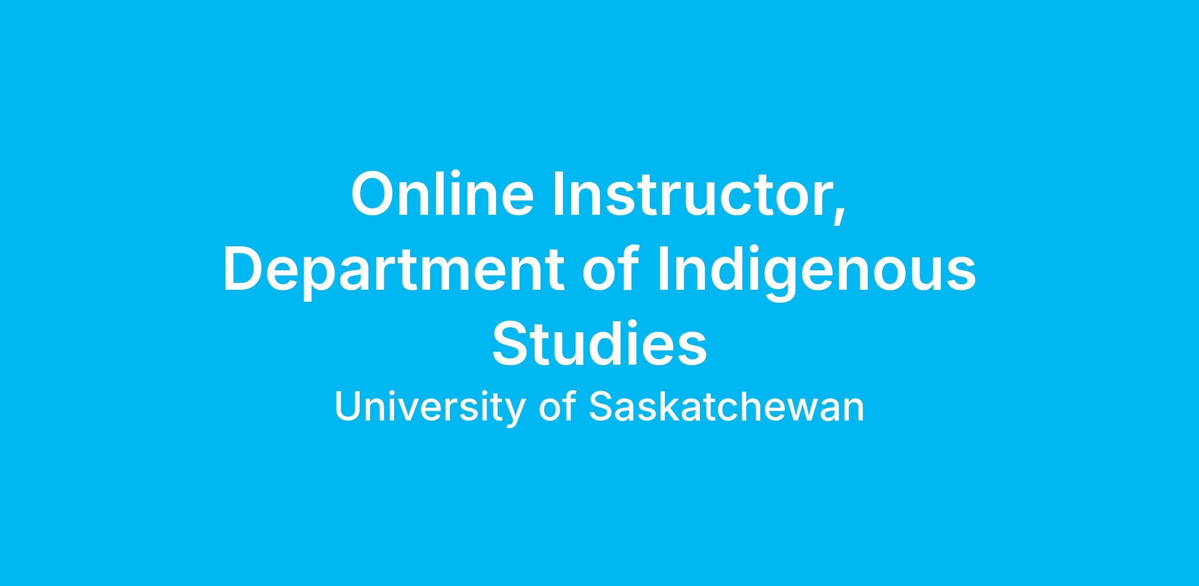 Online Instructor, Department of Indigenous Studies