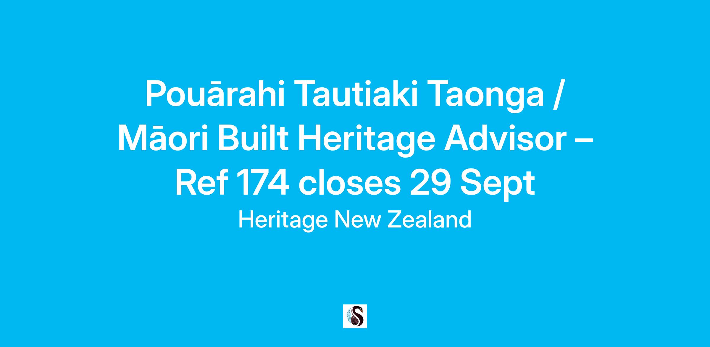 Pouārahi Tautiaki Taonga / Māori Built Heritage Advisor – Ref 174 closes 29 Sept
