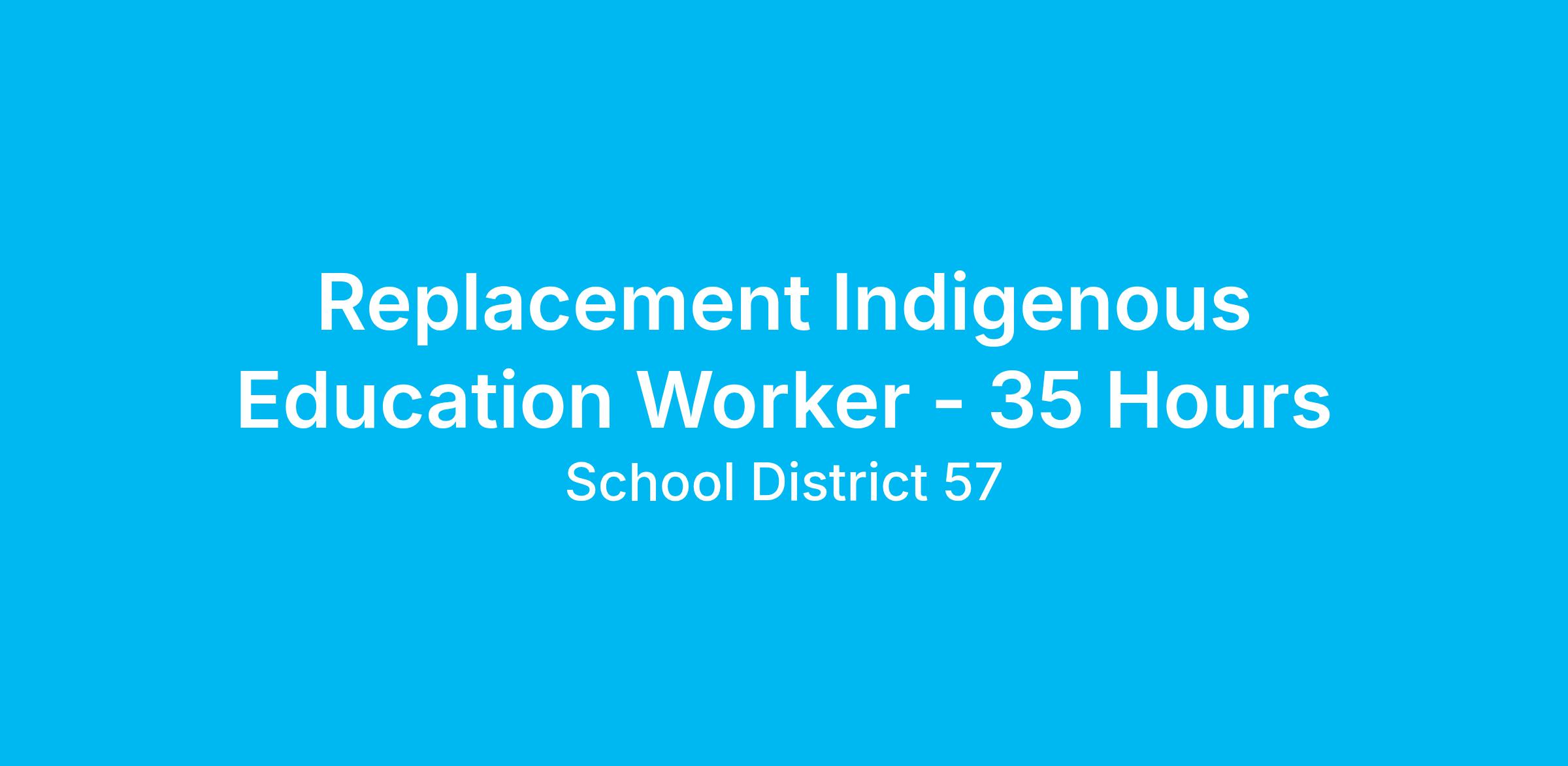 TITLE: REPLACEMENT INDIGENOUS EDUCATION WORKER - 35 Hours