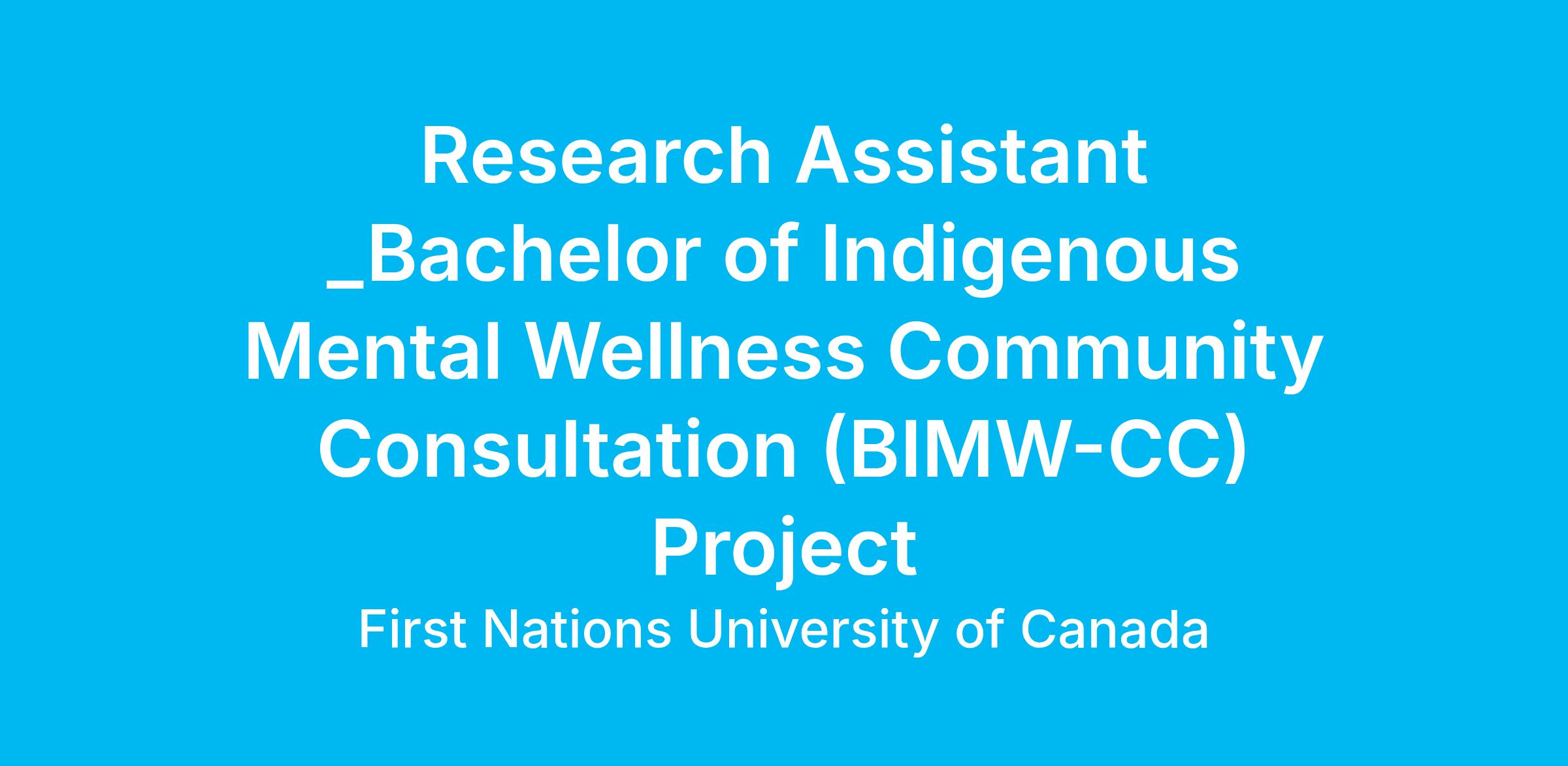 The First Nations University of Canada invites applications for the position of a Research Assistant to assist with research for the Bachelor of Indigenous Mental Wellness Community Consultation (BIMW-CC) Project. Hours for this position vary with up to 21 hours per week.