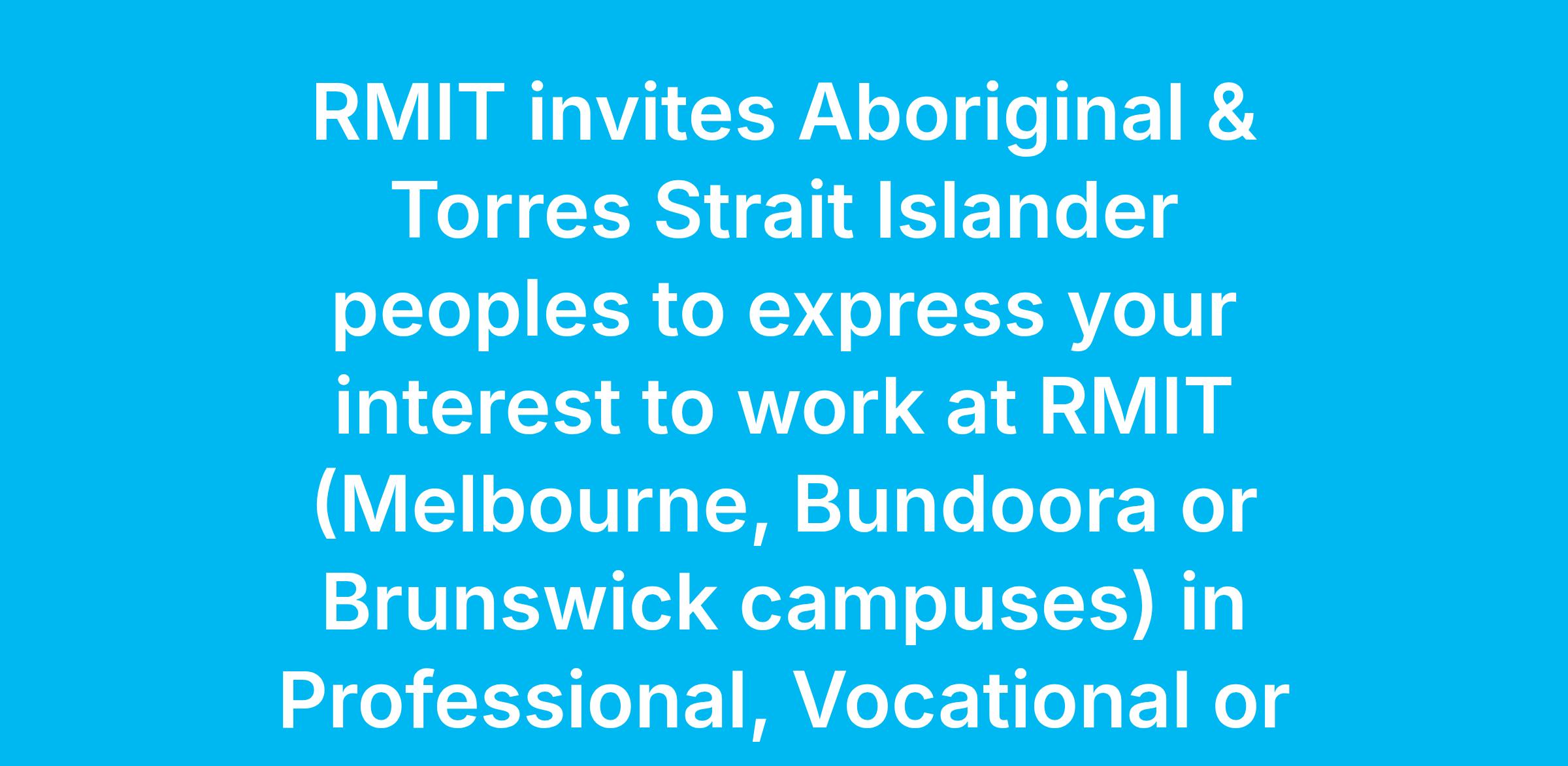 RMIT encourages Aboriginal and Torres Strait Islander Peoples to apply to be considered for Identified, Targeted, or mainstream roles (Designated EOI)*