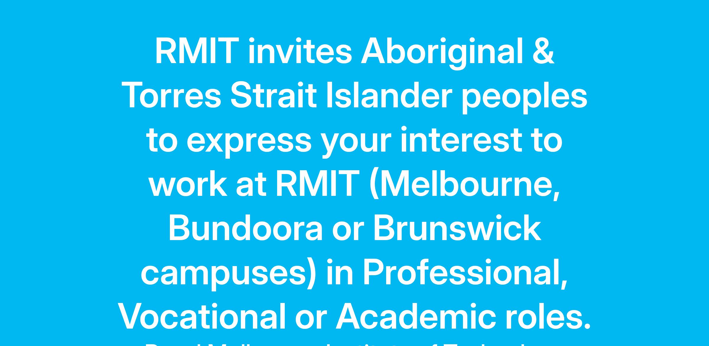 RMIT encourages Aboriginal and Torres Strait Islander Peoples to apply to be considered for Identified, Targeted, or mainstream roles (Designated EOI)*