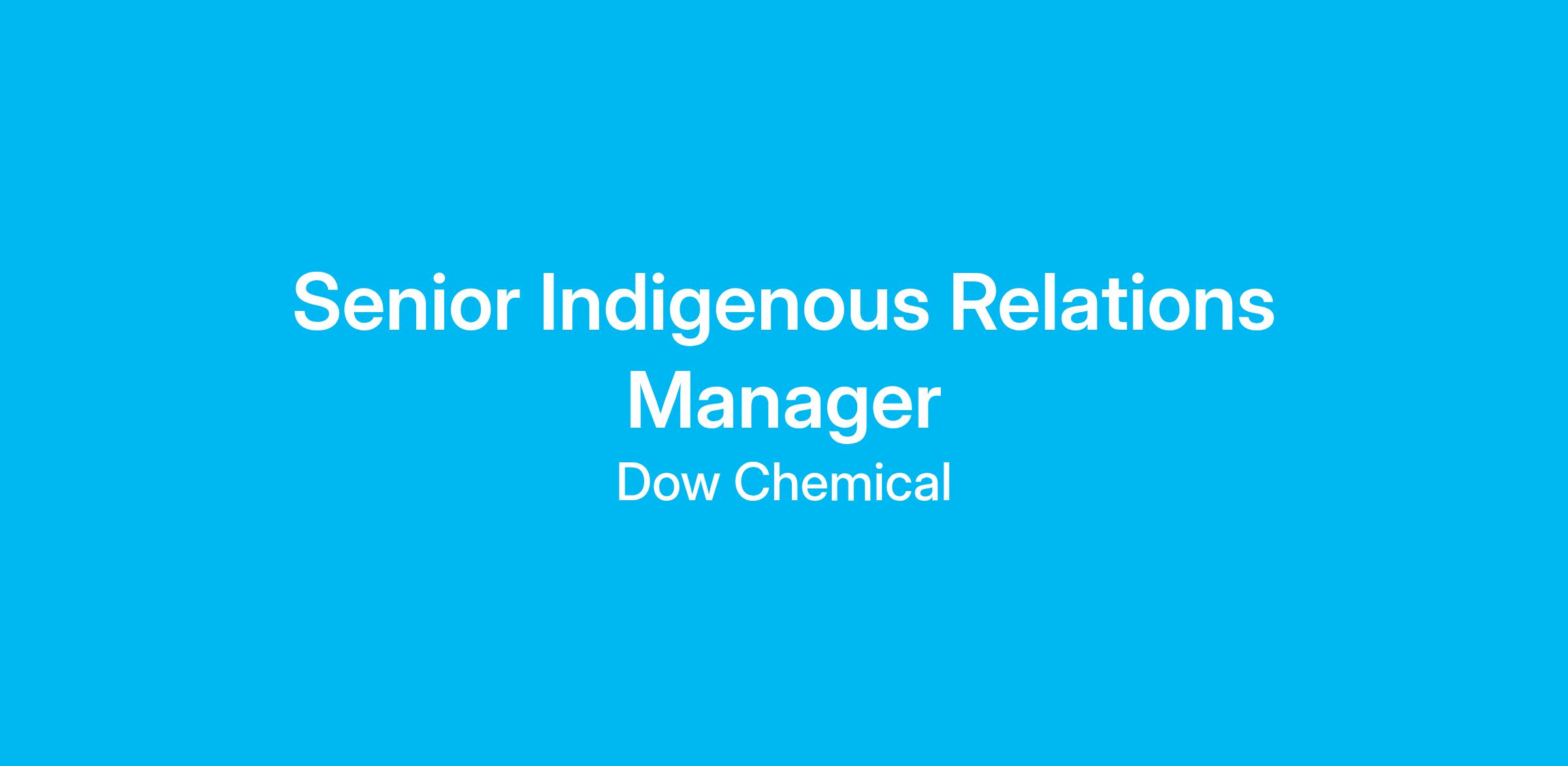 Dow has an exciting opportunity for a Senior Indigenous Relations Manager located in Calgary, Alberta, Canada.