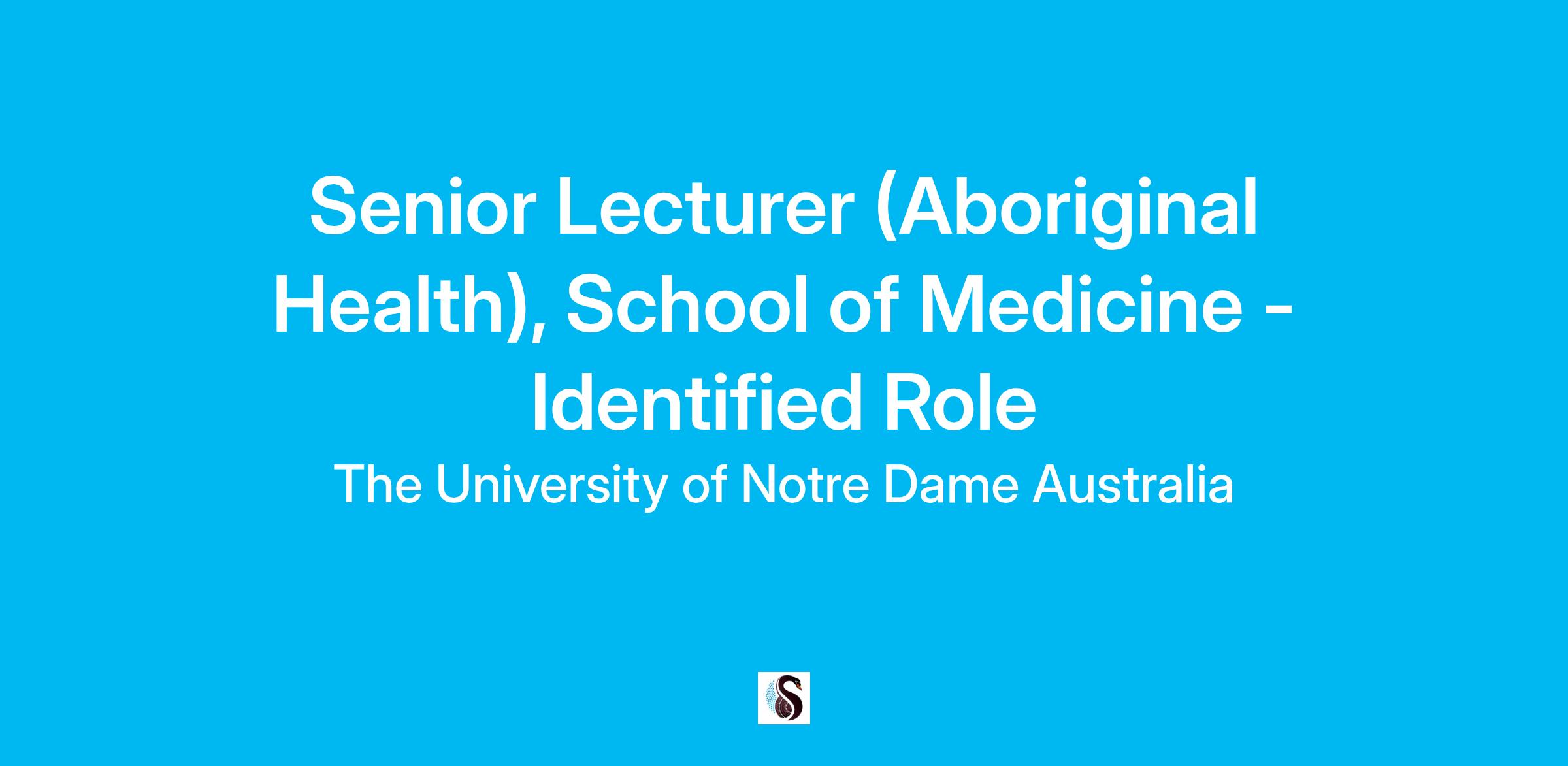 Senior Lecturer (Aboriginal Health), School of Medicine – Identified Role