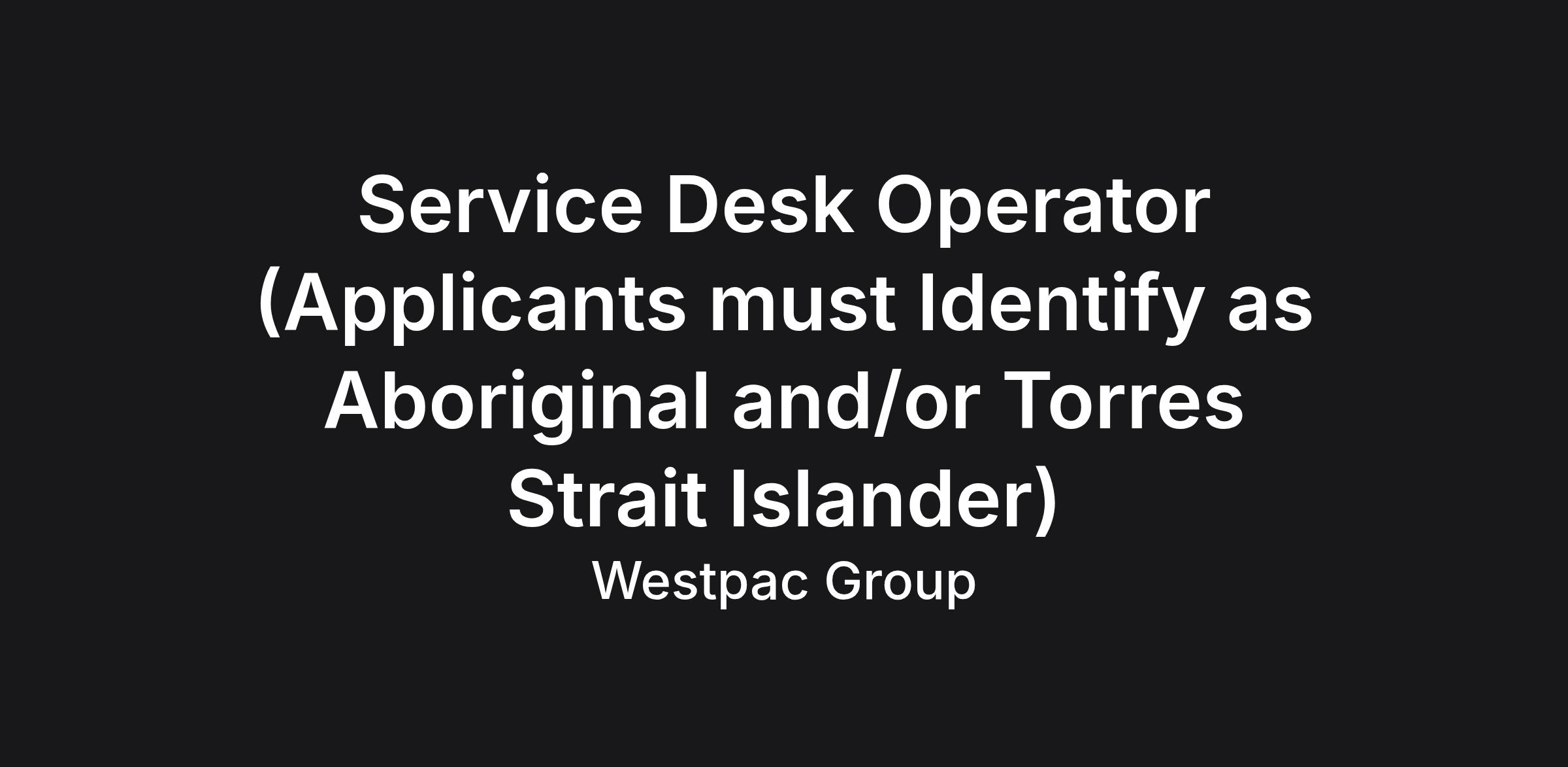 At Westpac we aim to help Aboriginal and Torres Strait Islander Australians succeed by supporting Indigenous employees to build meaningful careers. Applicants must identify as Aboriginal and/or Torres Strait Islander. The filling of this position is intended to constitute a special/equal opportunity measure under section 8(1) of the Racial Discrimination Act 1975 (Cth), and section 65 of the Equal Opportunity Act 1984 (SA). This forms part of Westpac’s strategy to foster a multicultural, vibrant and diverse workforce.