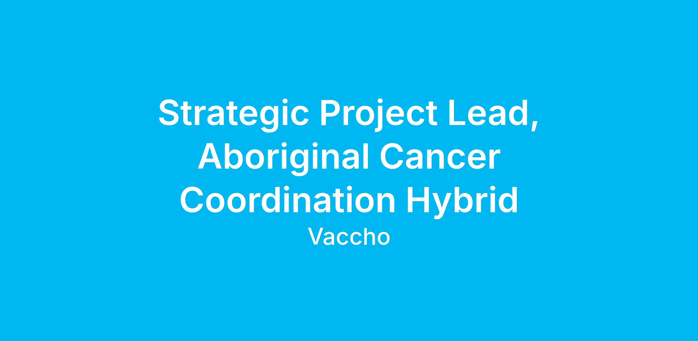 Job Title: Strategic Project Lead, Aboriginal Cancer Coordination