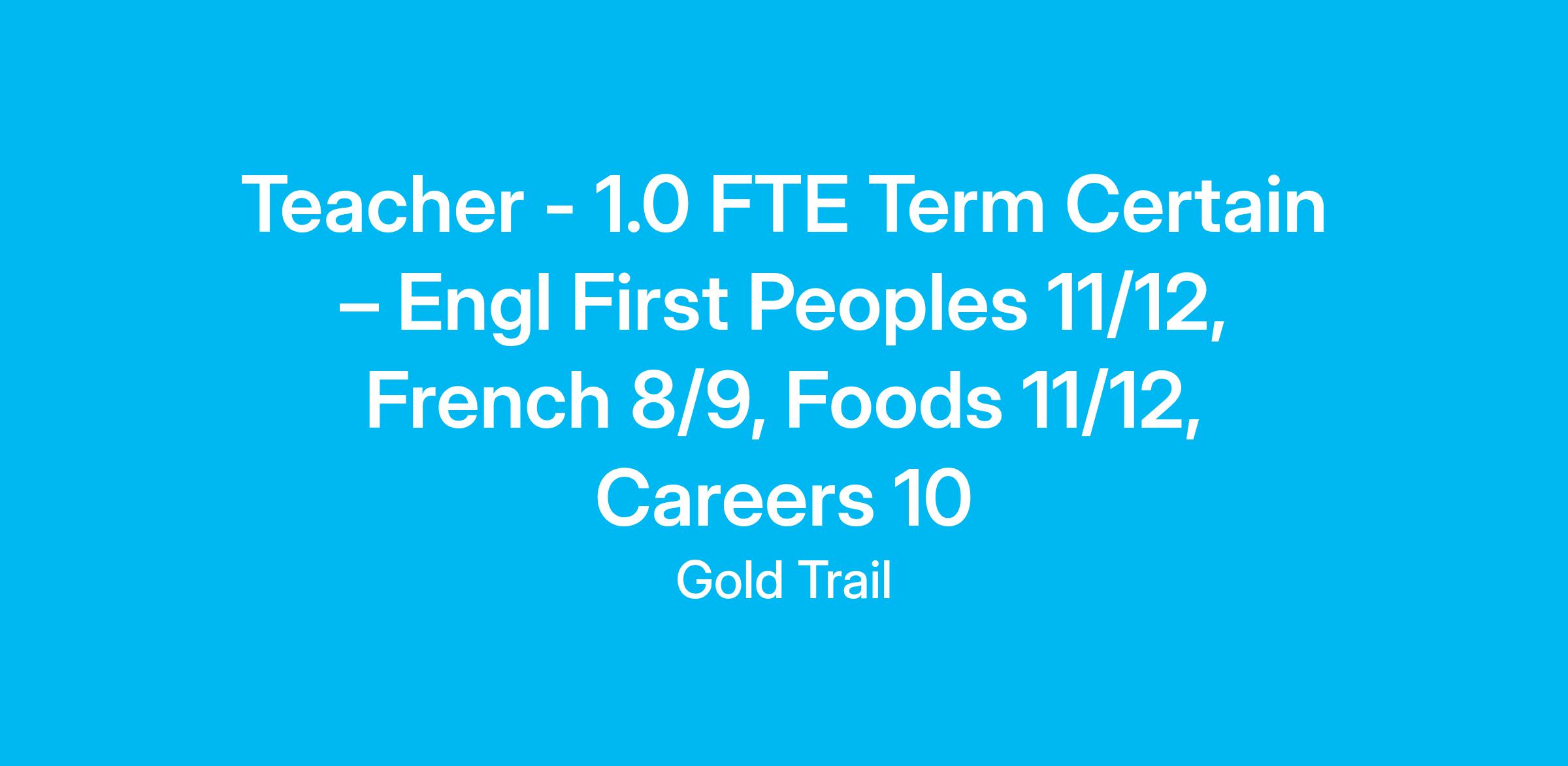1.0 FTE Term Certain – Engl First Peoples 11/12, French 8/9, Foods 11/12, Careers 10 Commencing January 5, 2026 to June 26, 2026 or return of the incumbent
