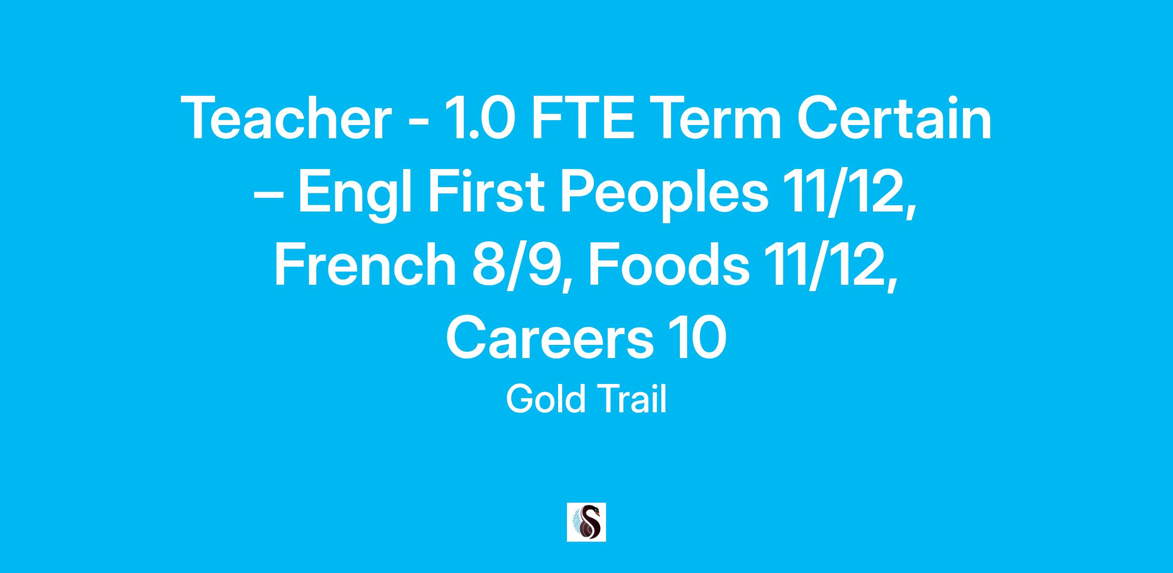 1.0 FTE Term Certain – Engl First Peoples 11/12, French 8/9, Foods 11/12, Careers 10 Commencing January 5, 2026 to June 26, 2026 or return of the incumbent
