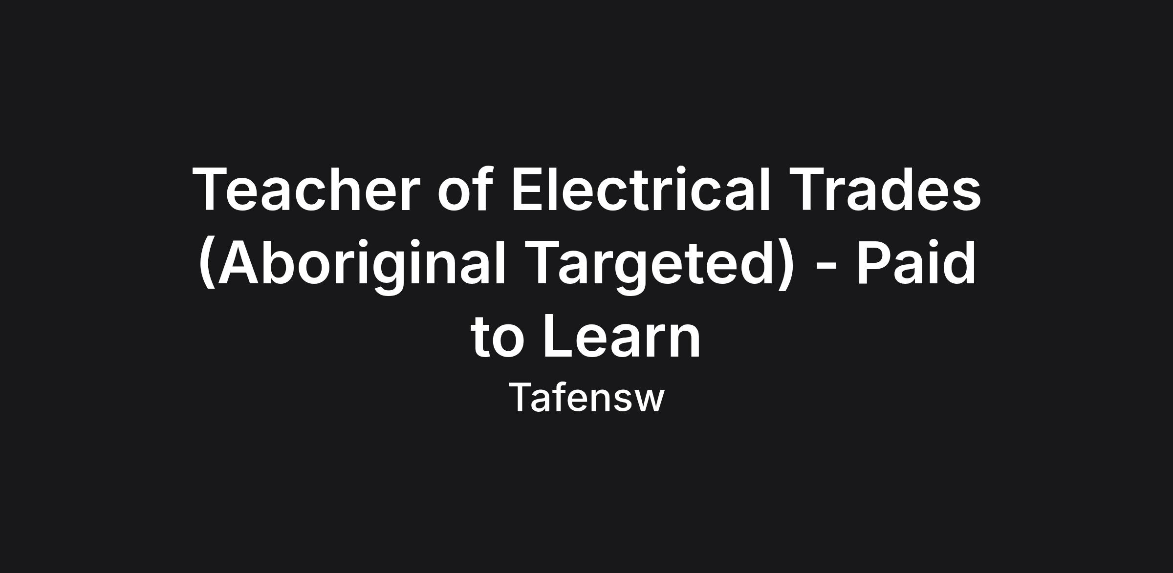 Teacher Electrical Trades (Aboriginal Targeted) - Paid to Learn