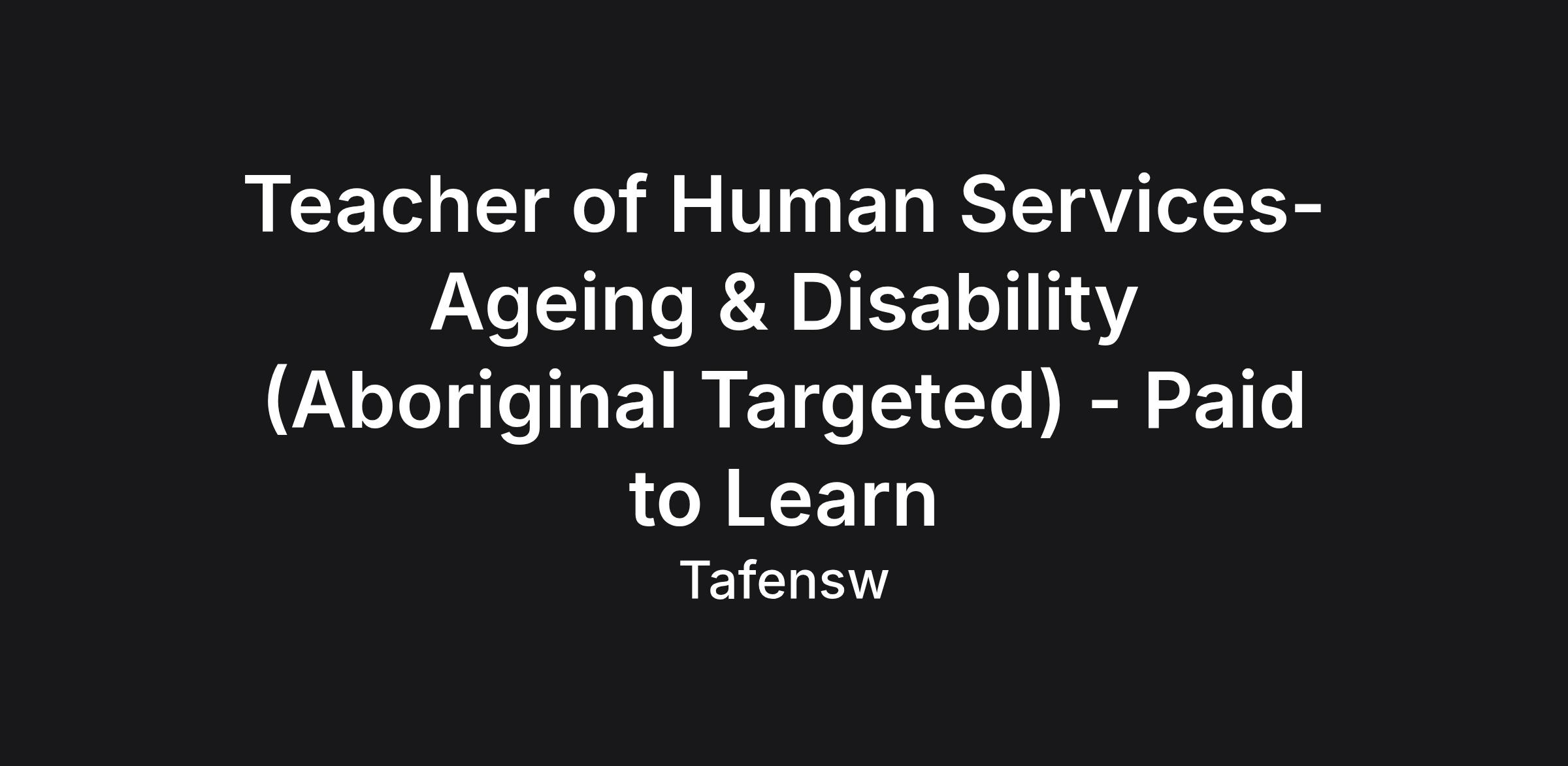 Teacher of Human Services-Ageing & Disability (Aboriginal Targeted) - Paid to Learn