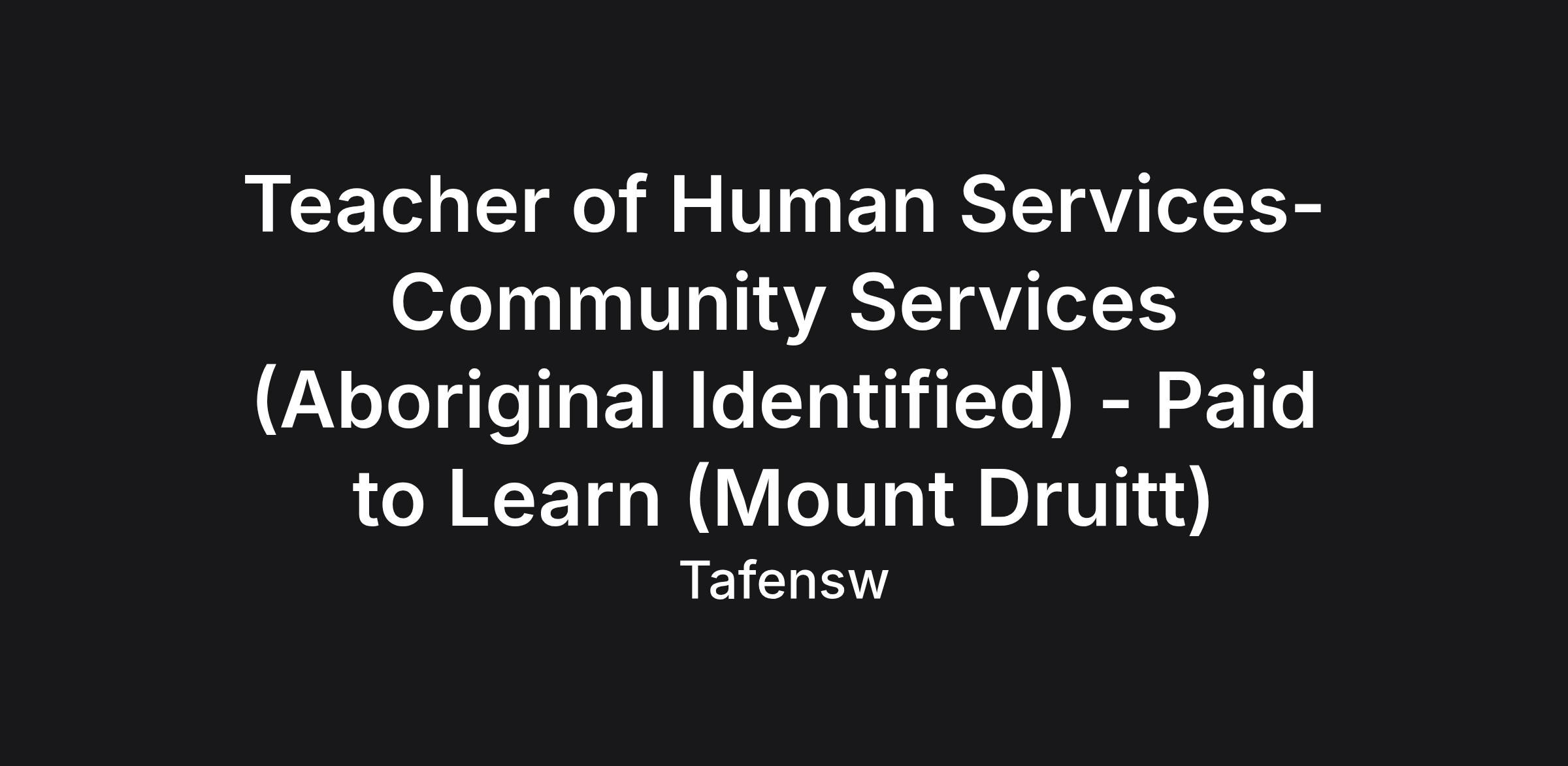 Teacher of Human Services – Community Services (Aboriginal Identified) - Paid to Learn
