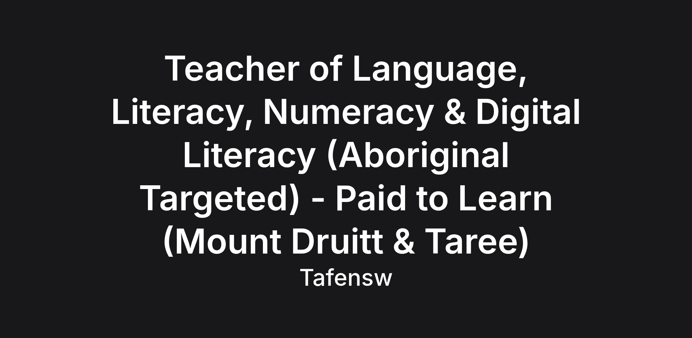 Teacher of Language, Literacy, Numeracy and Digital Literacy (Aboriginal Targeted) - Paid to Learn