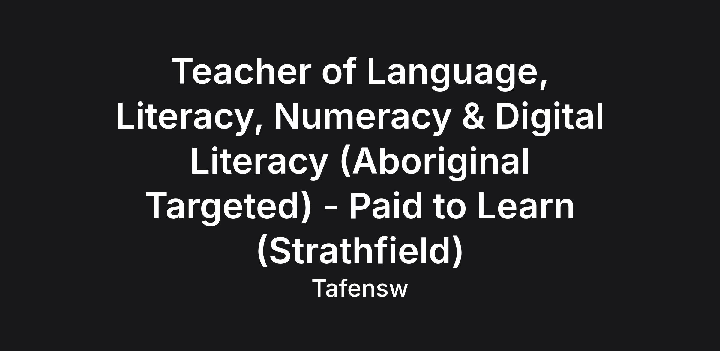 Teacher of Language, Literacy, Numeracy and Digital Literacy (Aboriginal Targeted) - Paid to Learn