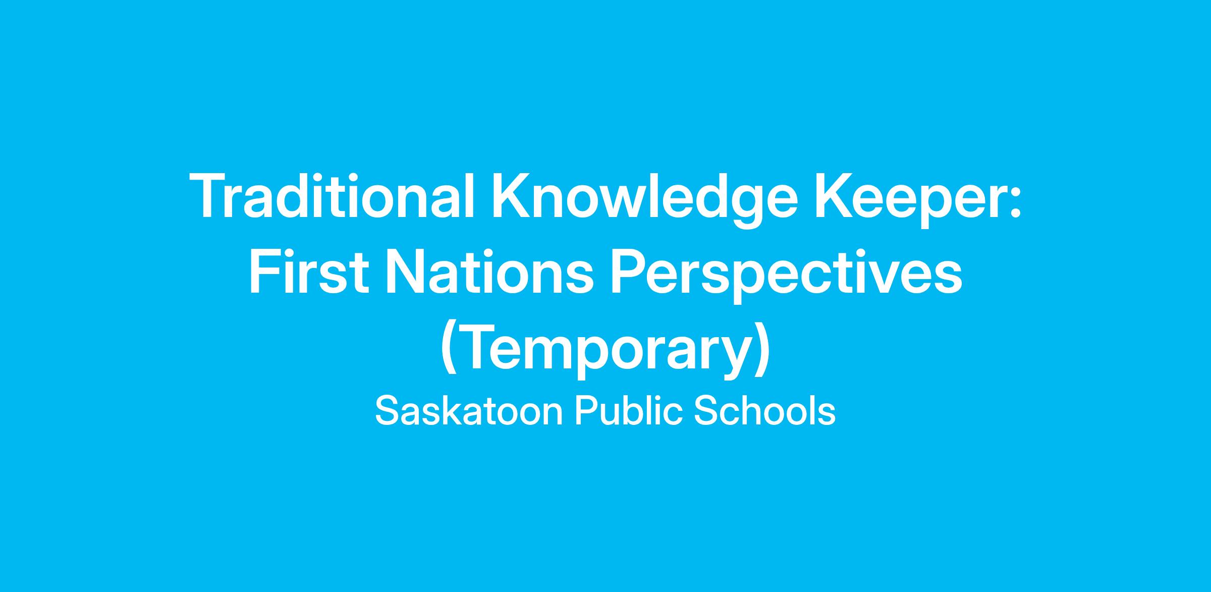 The Traditional Knowledge Keeper: First Nations Perspectives provides leadership in the inclusion of First Nations content and perspectives at Saskatoon Public Schools with the goal to create culturally responsive learning environments and improve student-learning outcomes.