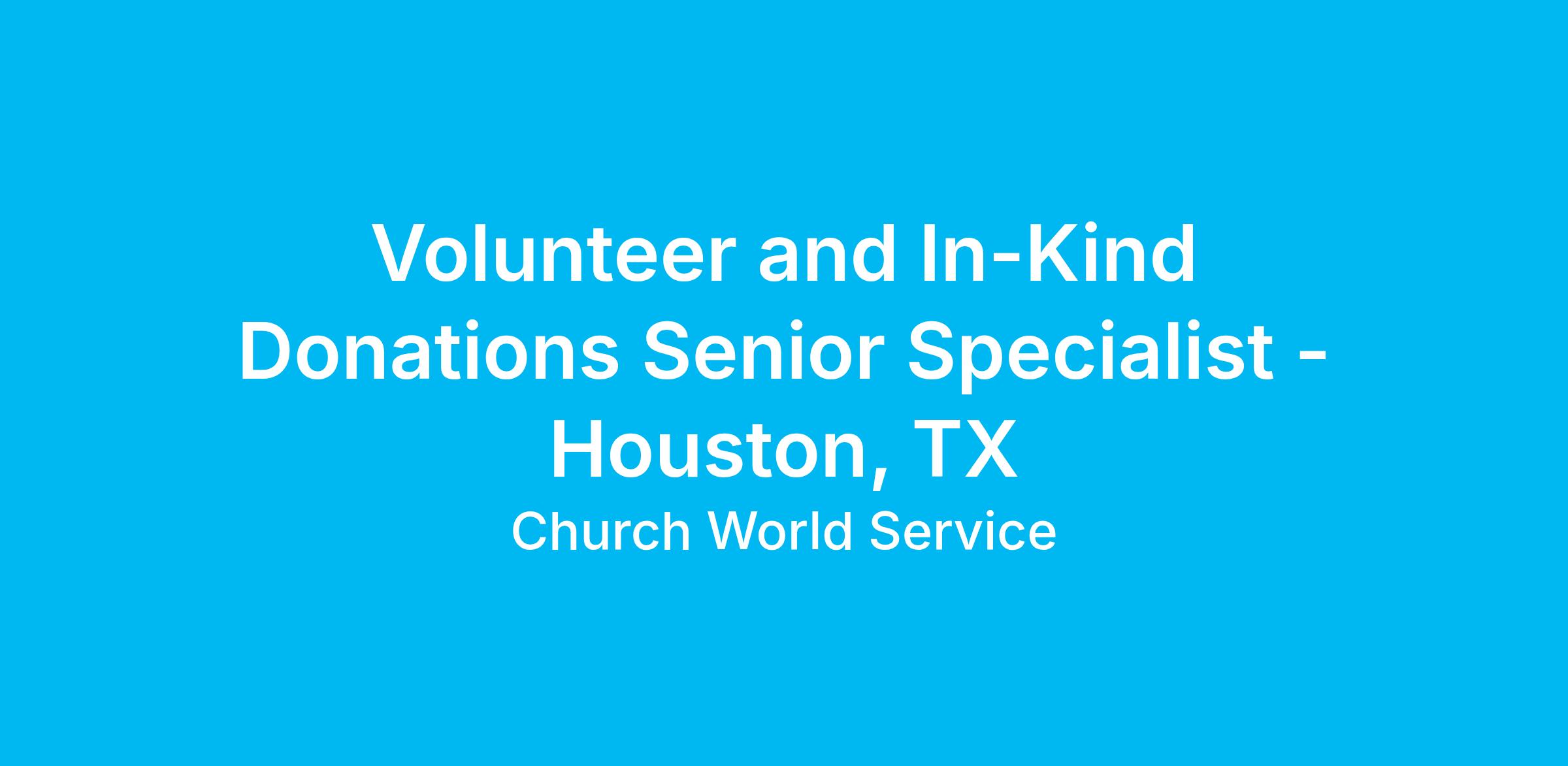 The Volunteer Coordinator/In-Kind Donations Sr. Specialist is responsible for recruiting, training and supporting local volunteers and managing CWS Houston’s in-kind donations program. The employee will work closely with the CWS Houston Office of Community Engagement to ensure that volunteer and partner engagement aligns with the needs of clients and staff. The Volunteer Coordinator/In-Kind Specialist is responsible for documenting all volunteer and community engagement activities well as recording in-kind donations. The volunteer coordinator and in-kind donations specialist will manage the CWS Free Store and storage units, and ensure efficient tracking, storage, and distribution of in-kind donations, office supplies and equipment to clients. On-site labor in Houston will be required, with special attention to unloading, unboxing and sorting supplies, equipment and donations.