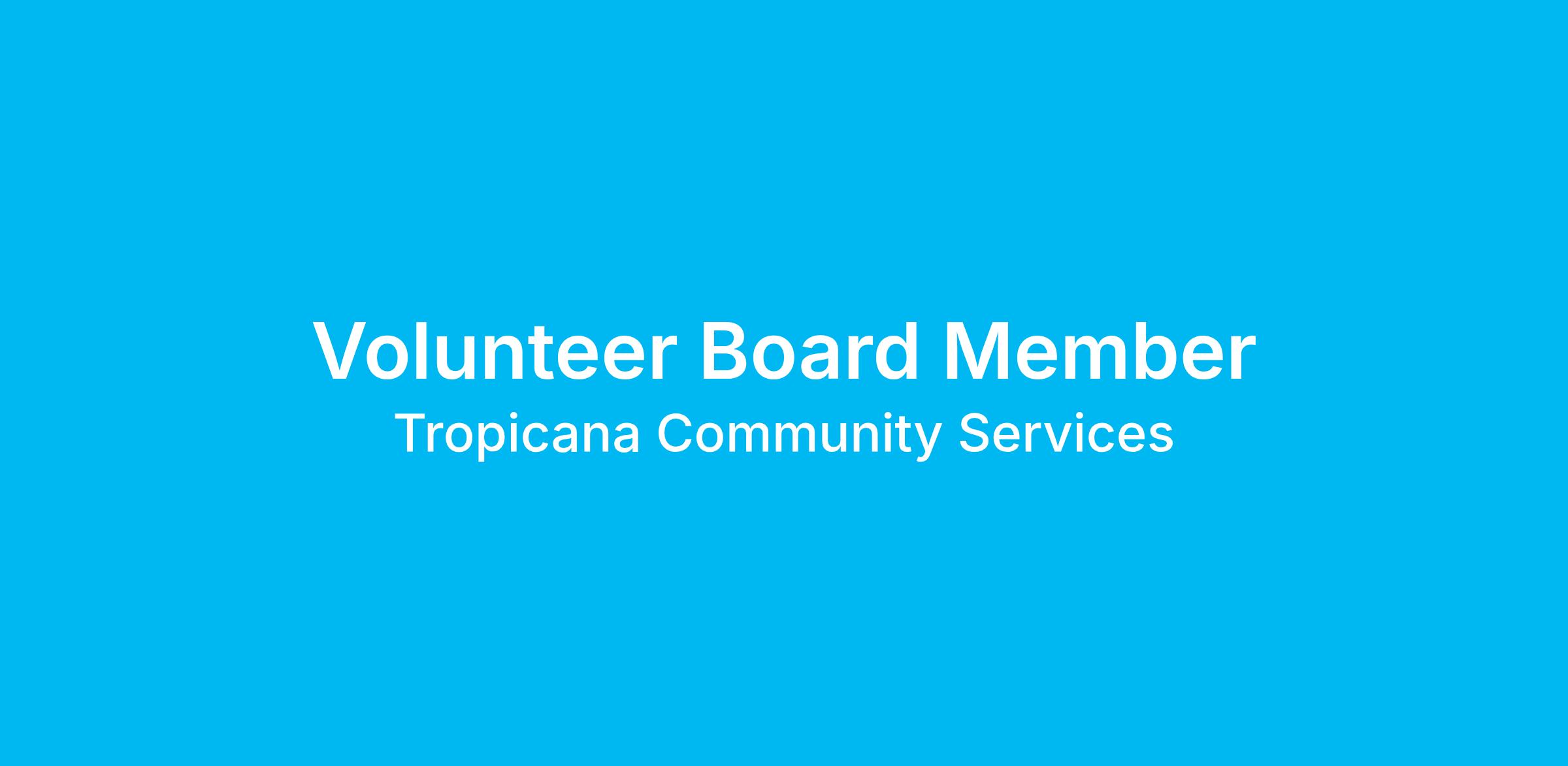 The Board of Directors of Tropicana Community Services is currently seeking new Volunteer Board Members with a variety of skills, lived experience, and professional expertise to help guide the organization into its next phase of growth and impact.