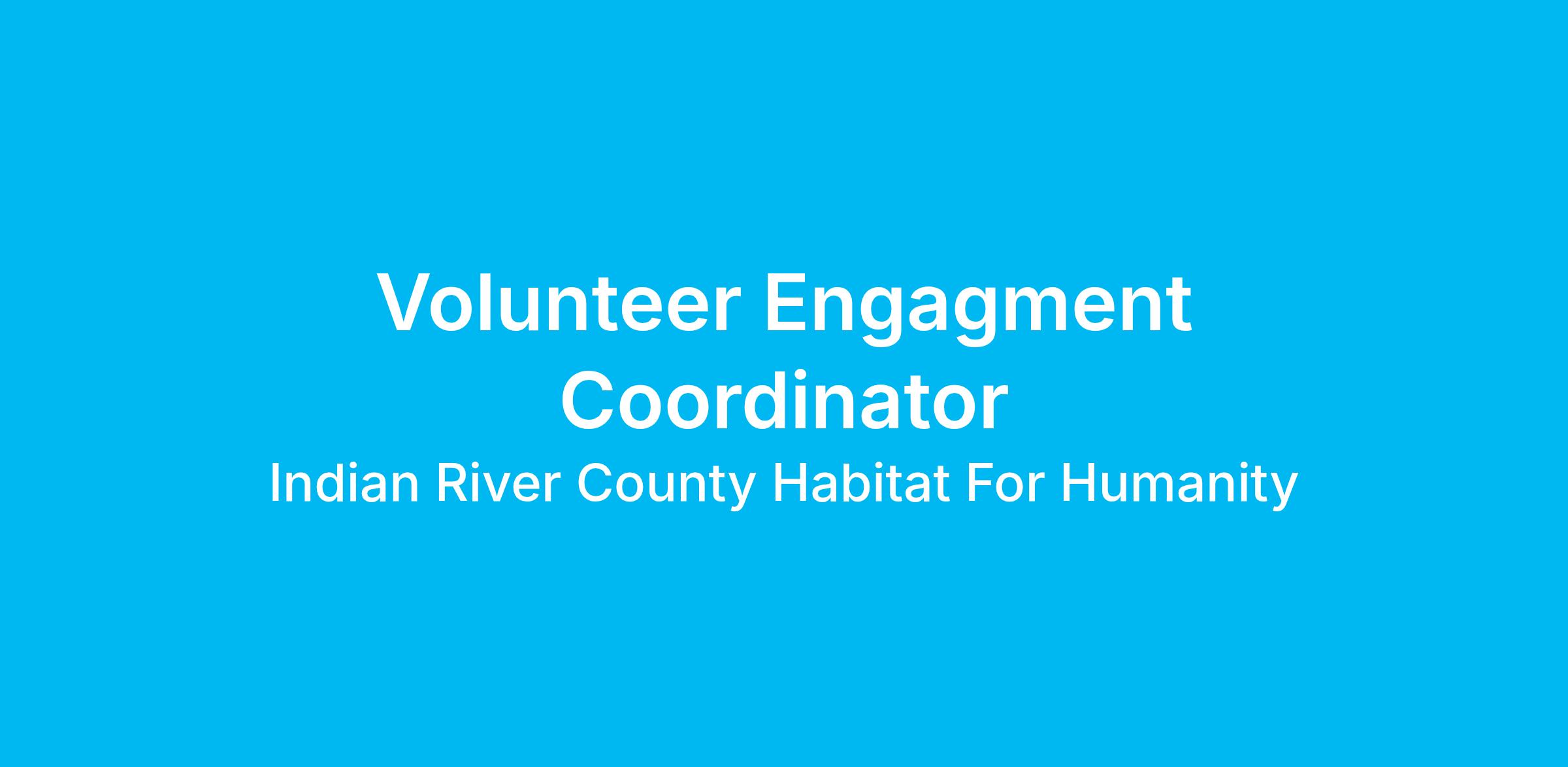 Indian River Habitat seeks a dynamic and high-energy individual for the mission-critical role of Volunteer Engagement Coordinator. Under the supervision of the Communications & Advocacy Manager at Indian River Habitat for Humanity (IRHFH) and in close collaboration with the Director of Construction and ReStore Managers, the Volunteer Engagement Coordinator recruits and onboards all volunteers and provides best-in-class volunteer experiences for individuals, corporations, and organizations.