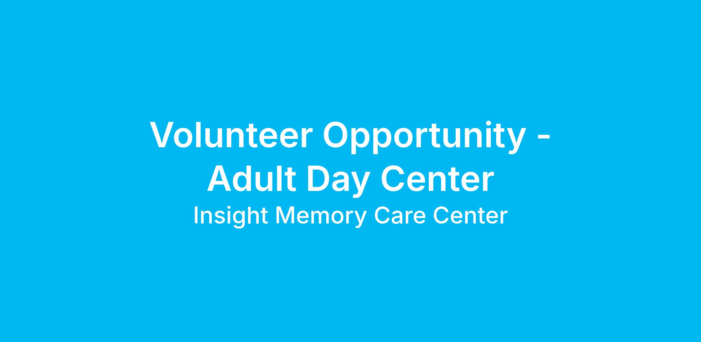Insight Memory Care Center (IMCC) is looking for volunteers who would like to make an impact in the lives of older adults who have memory impairments such as Dementia or Alzheimer's.